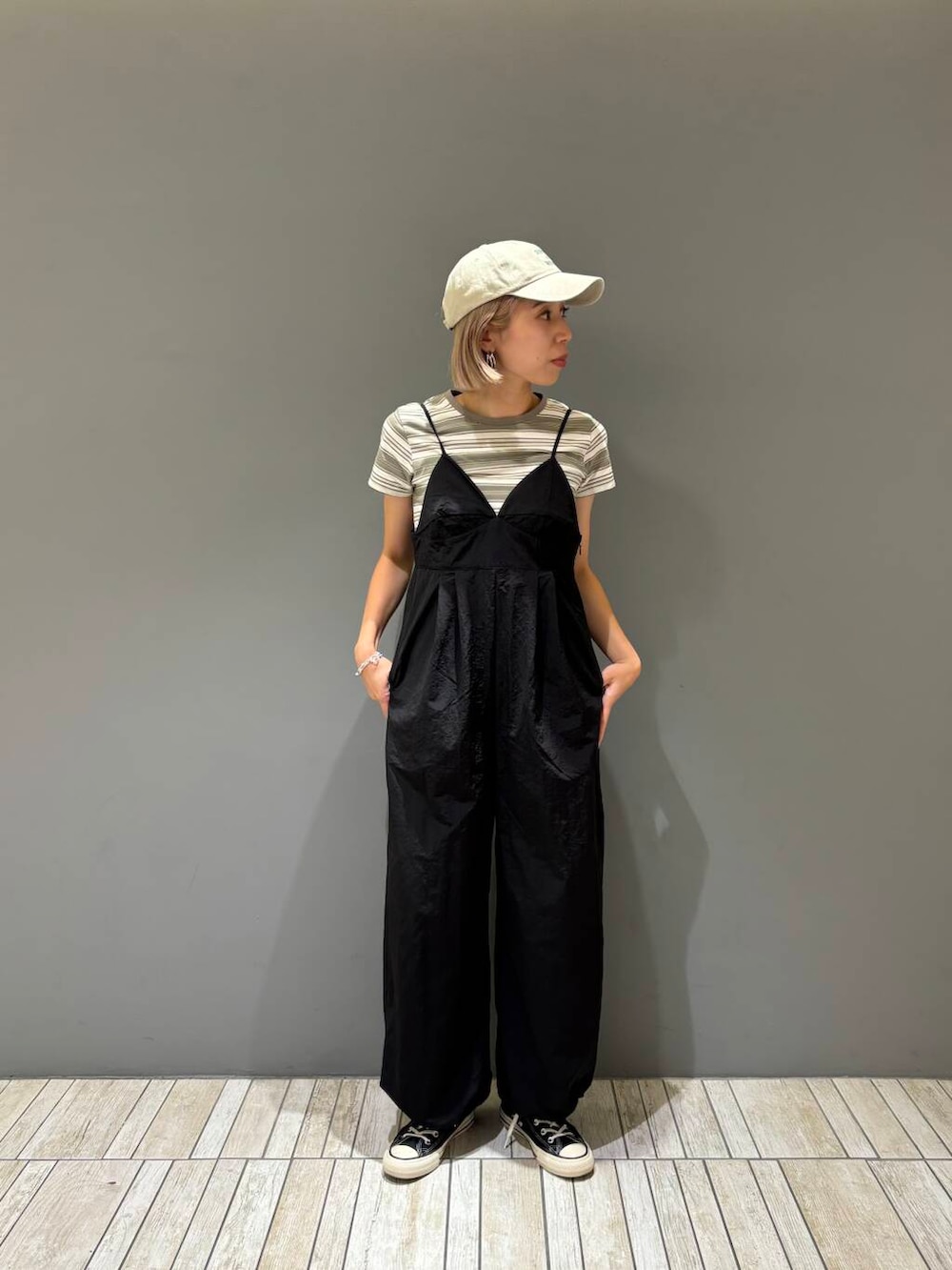 キャミビスチェサロペットとコンパクトレイヤードTEEのタンクトップはなしで着用しました♪