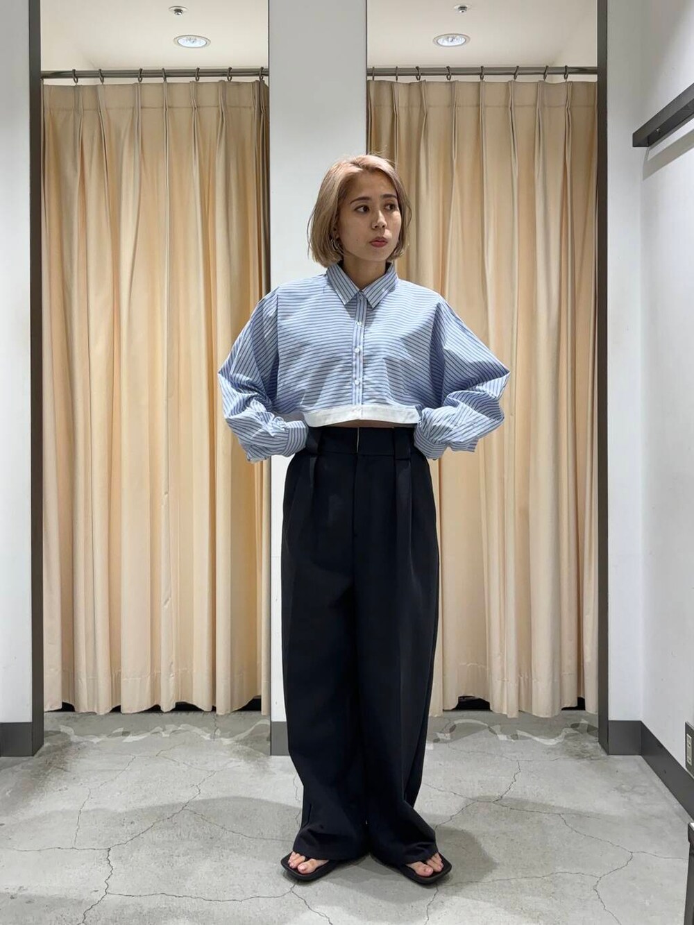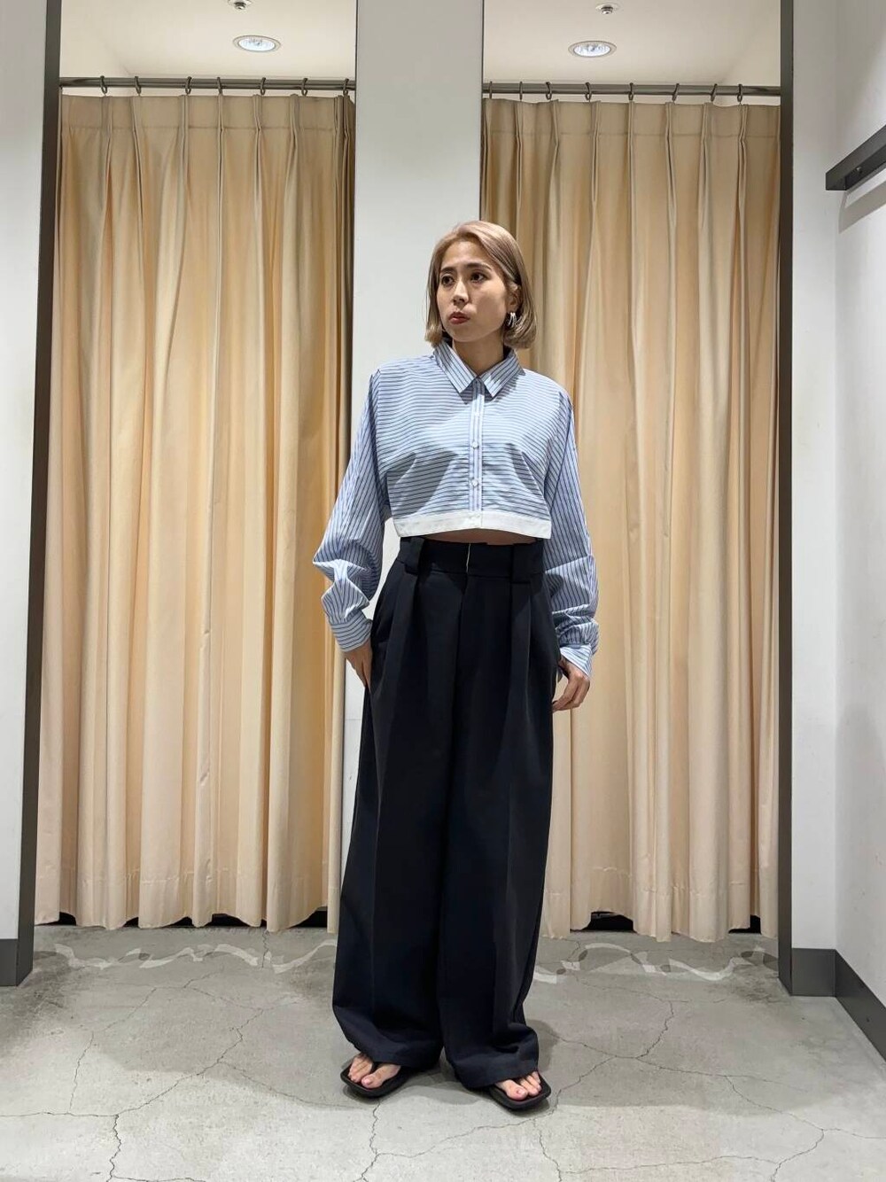 バイカラーヘムクロップドシャツとチノタックWIDEパンツと合わせて着用しました♪