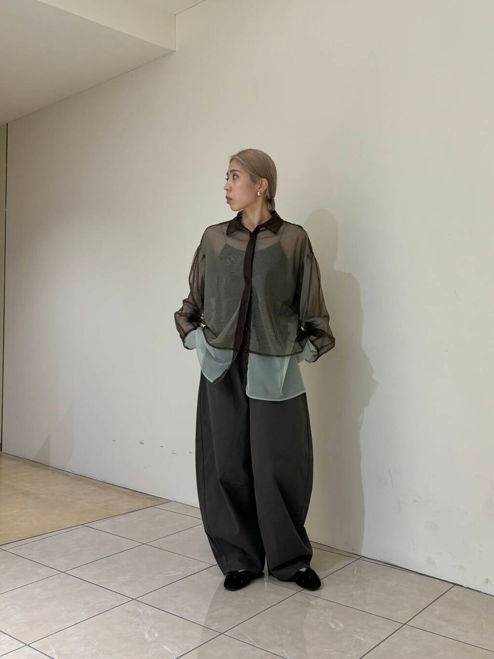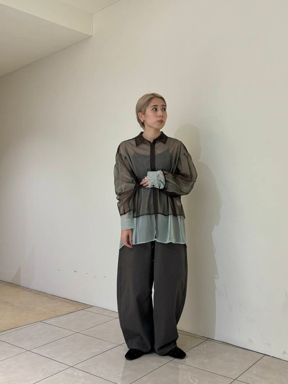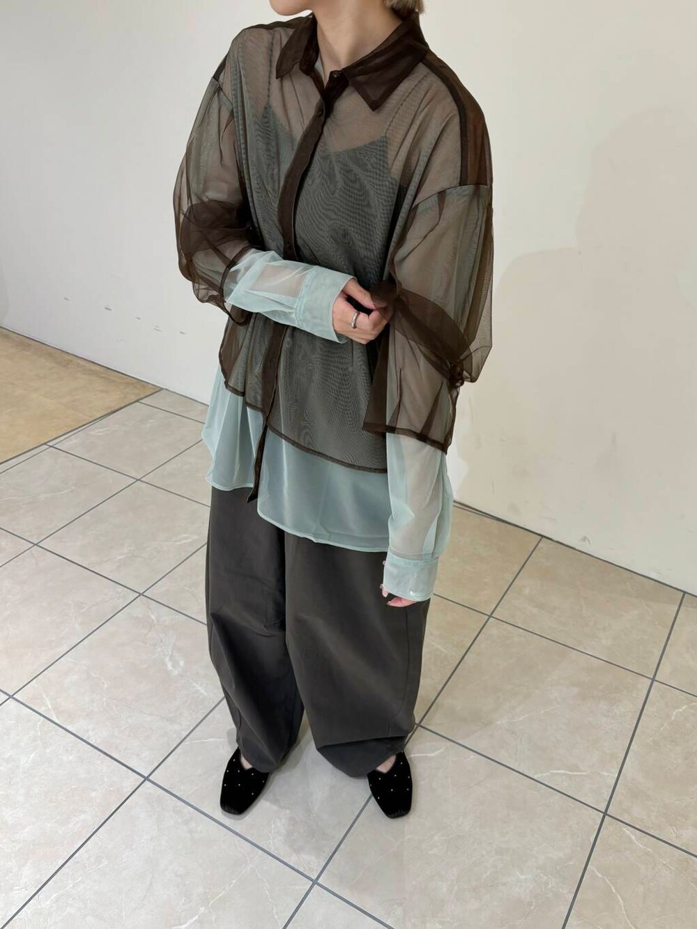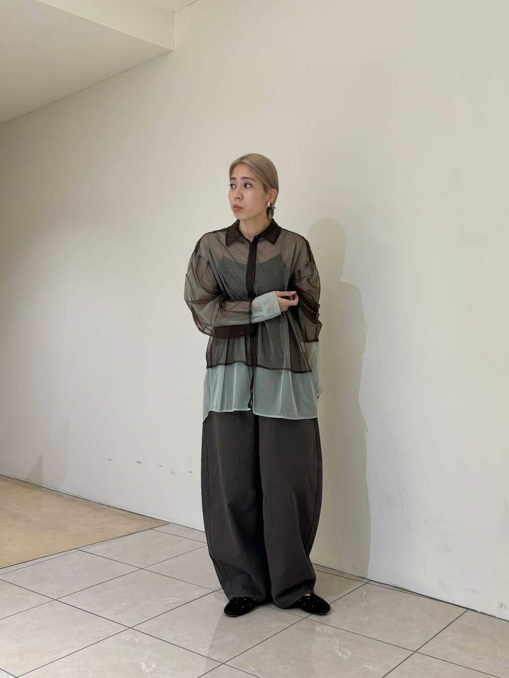 レイヤードシアーシャツとワンタックコクーンパンツを着用しました!