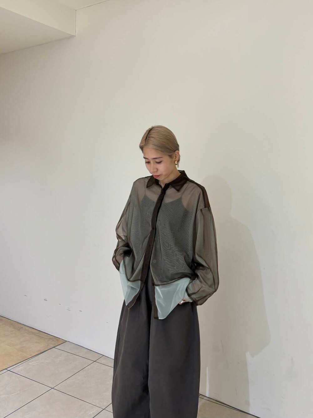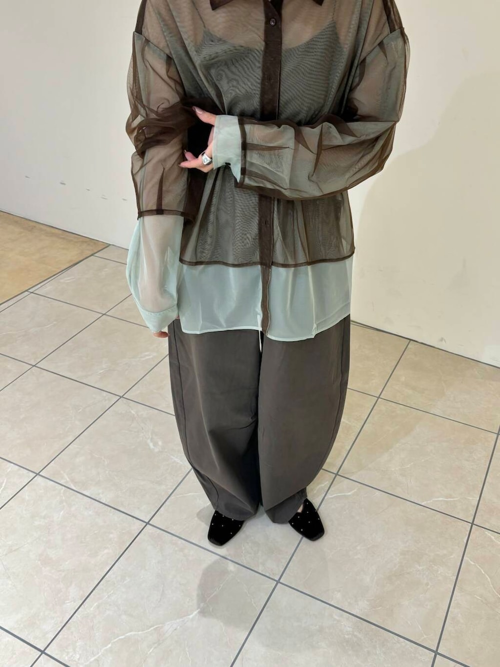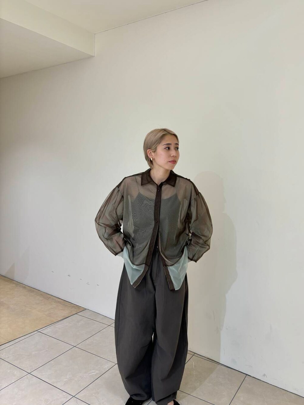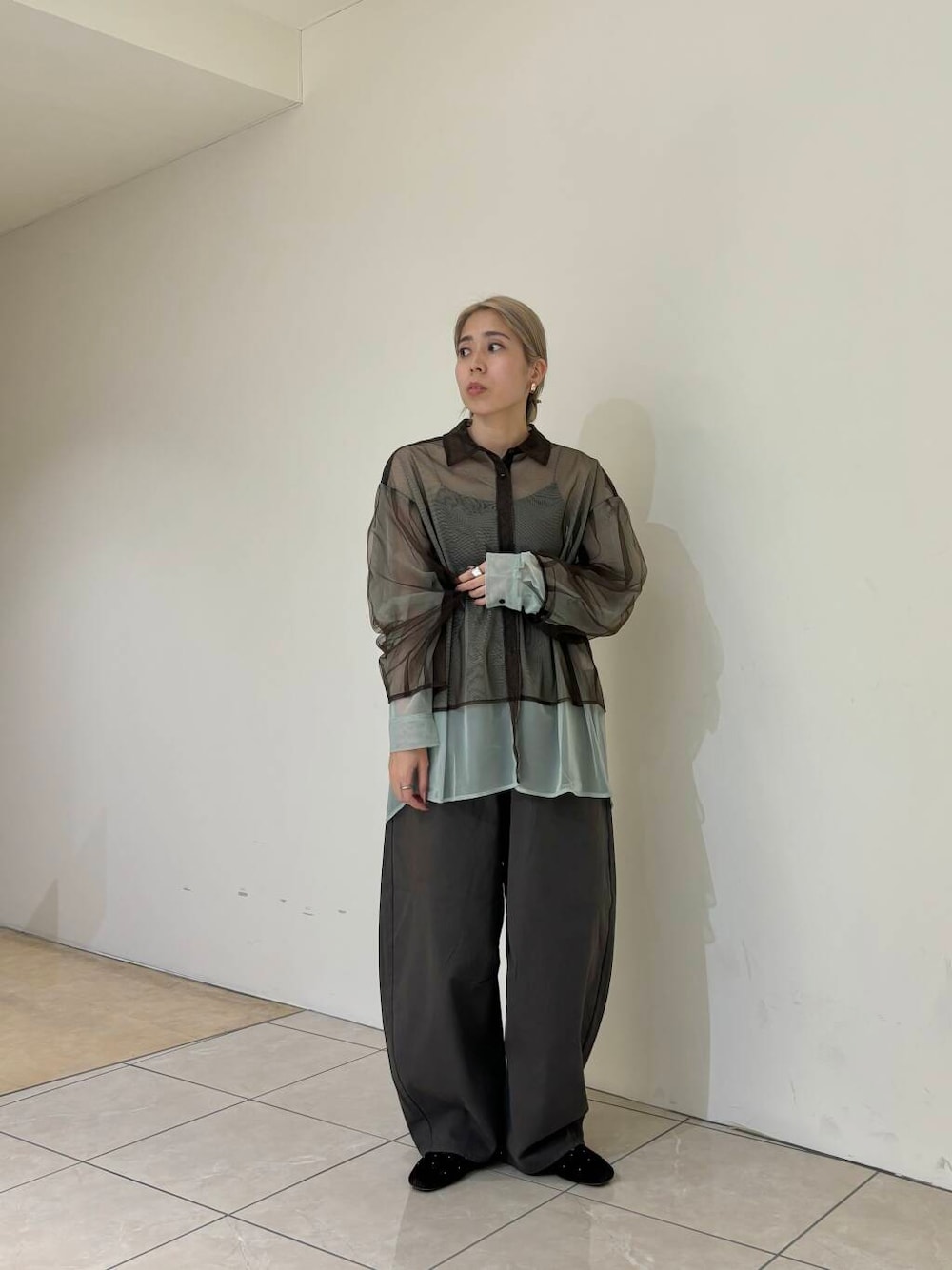 レイヤードシアーシャツとワンタックコクーンパンツを着用しました!