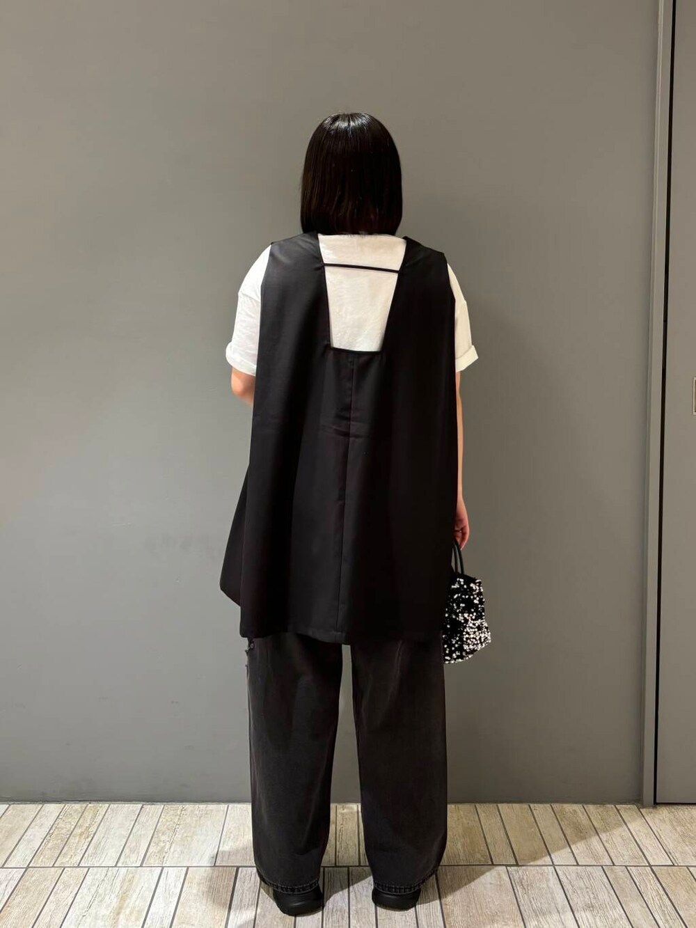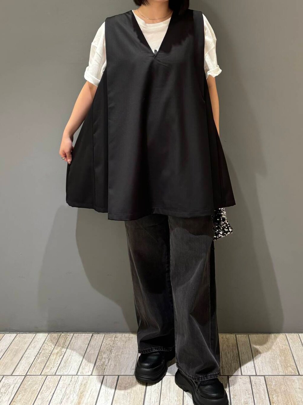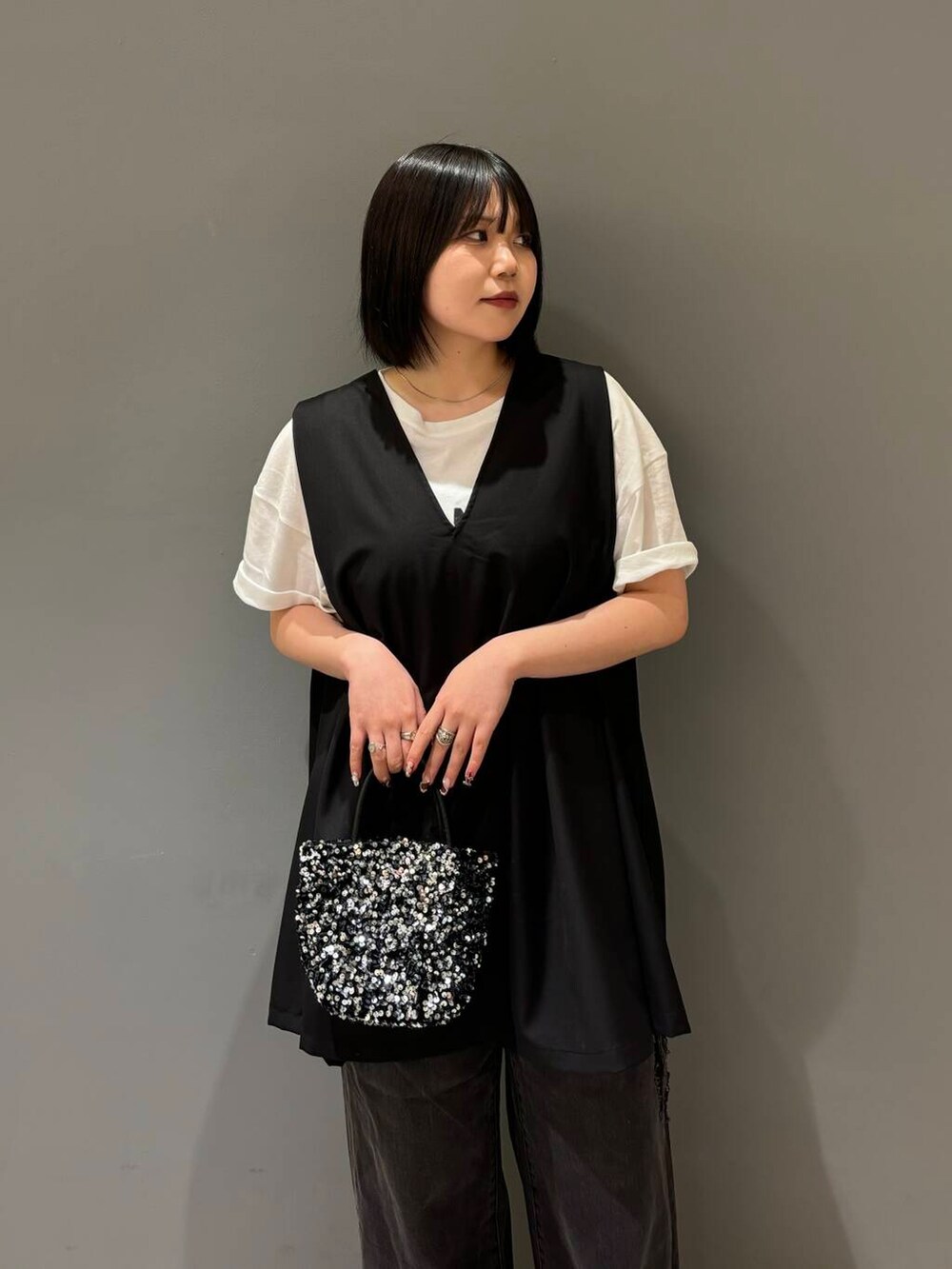 今回は、シアープリントBIGTEE、ショルダータックミニワンピース、ダメージウォッシングデニム、チェーン付きスパンコールバッグを着てみました!