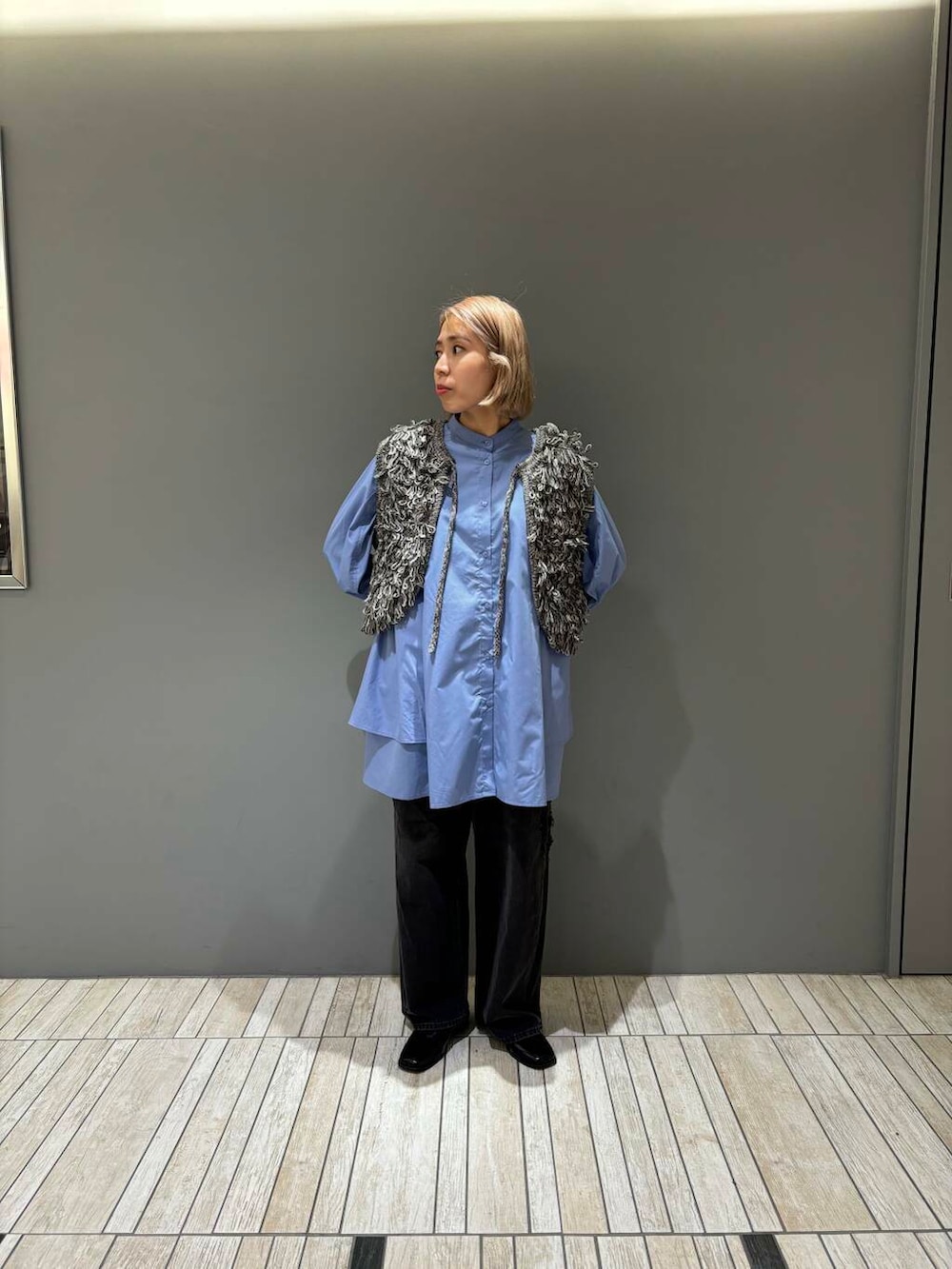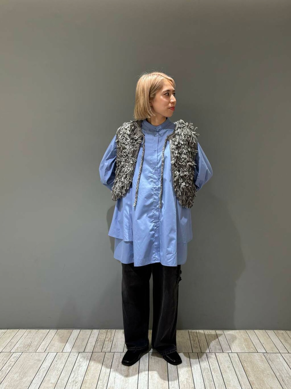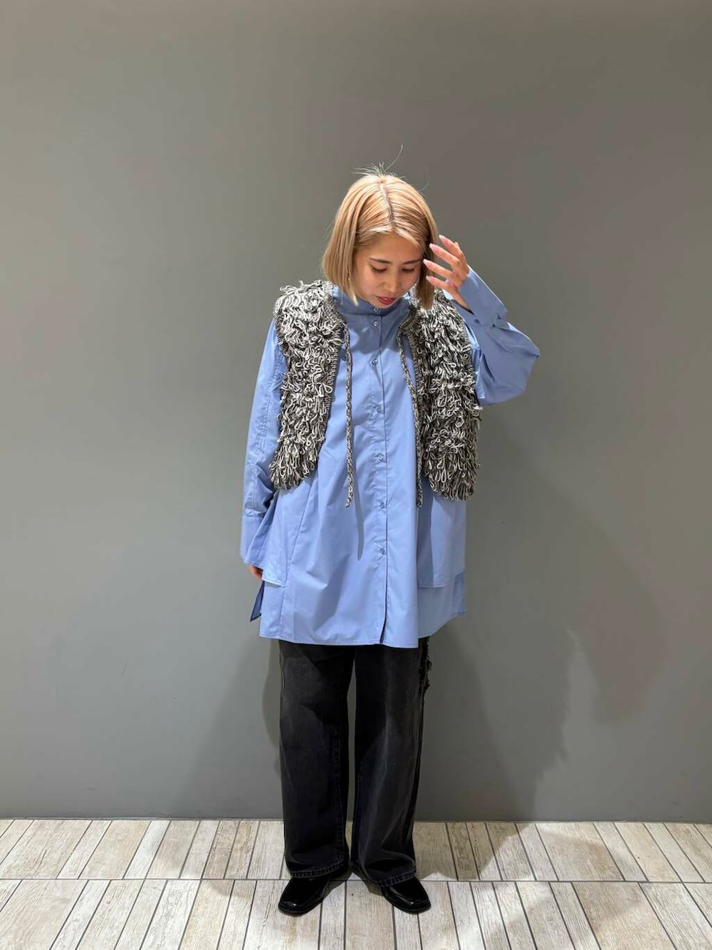 ループニットベストとヘムタックミニシャツワンピースとダメージウォッシングデニムを着用しました♪
