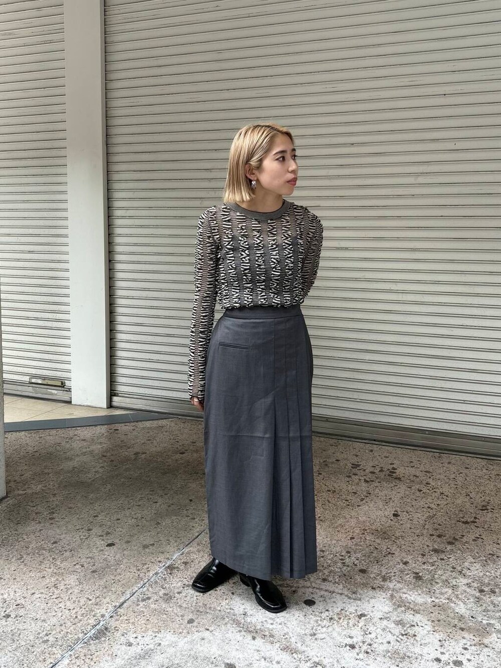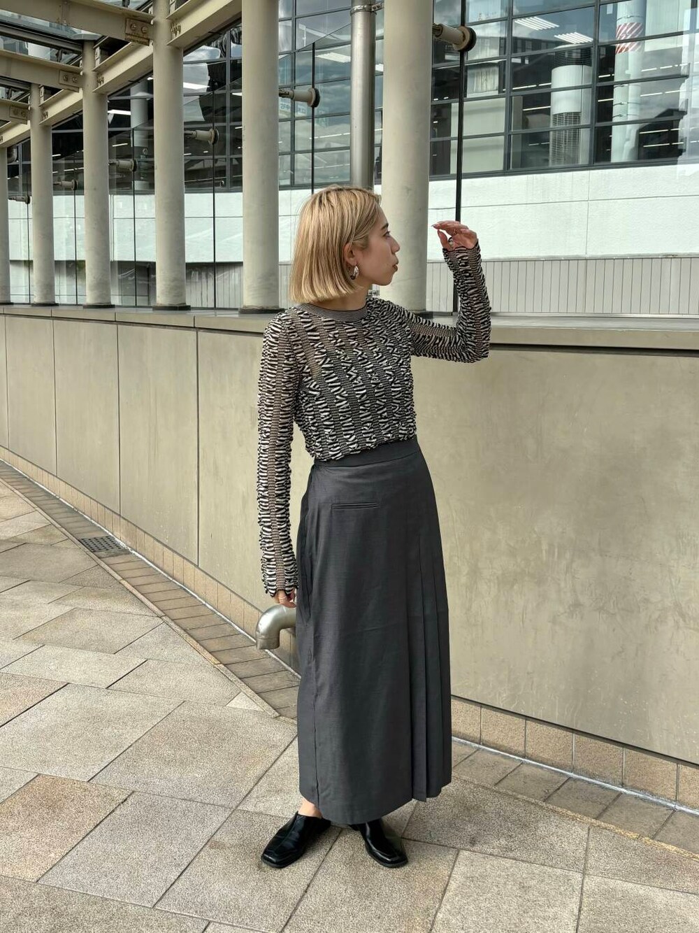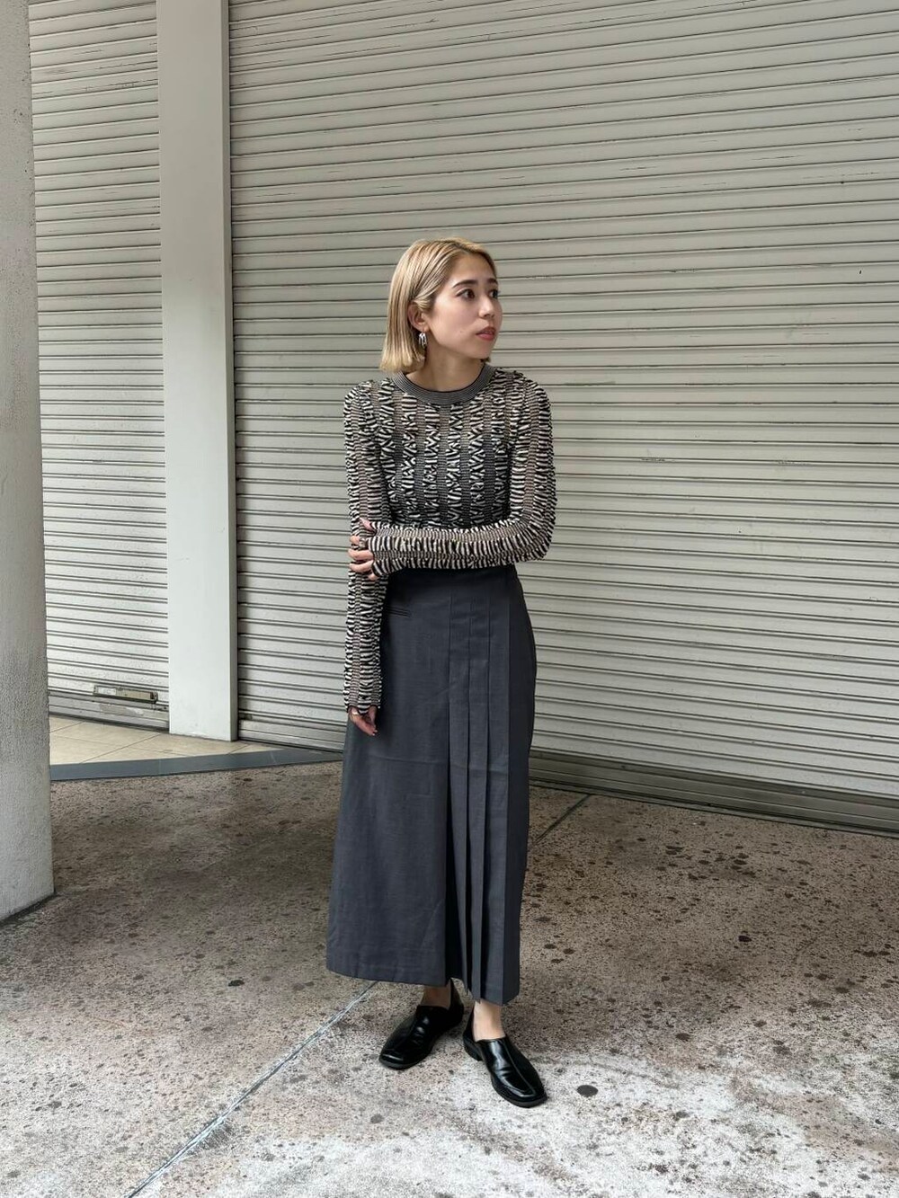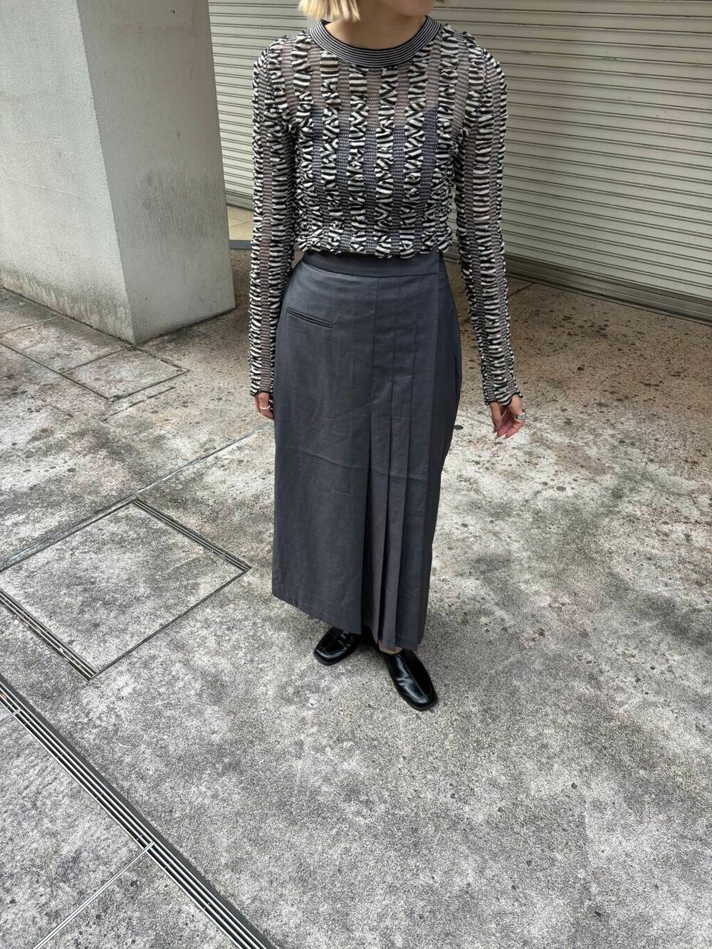 ラップライクプリーツスカートとシャーリングコンパクトニットを着用しました♪