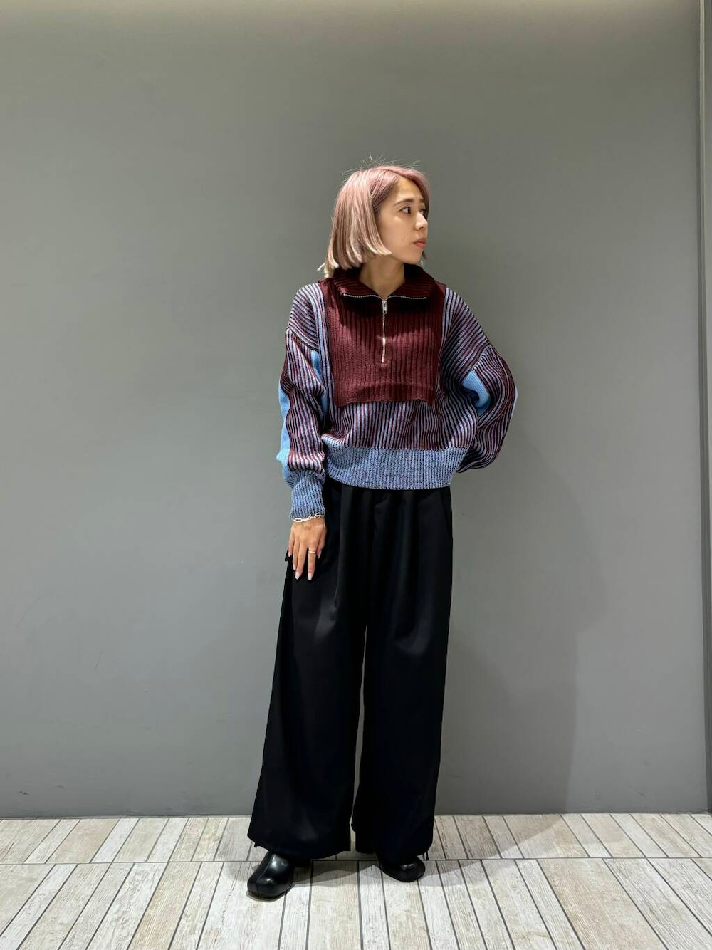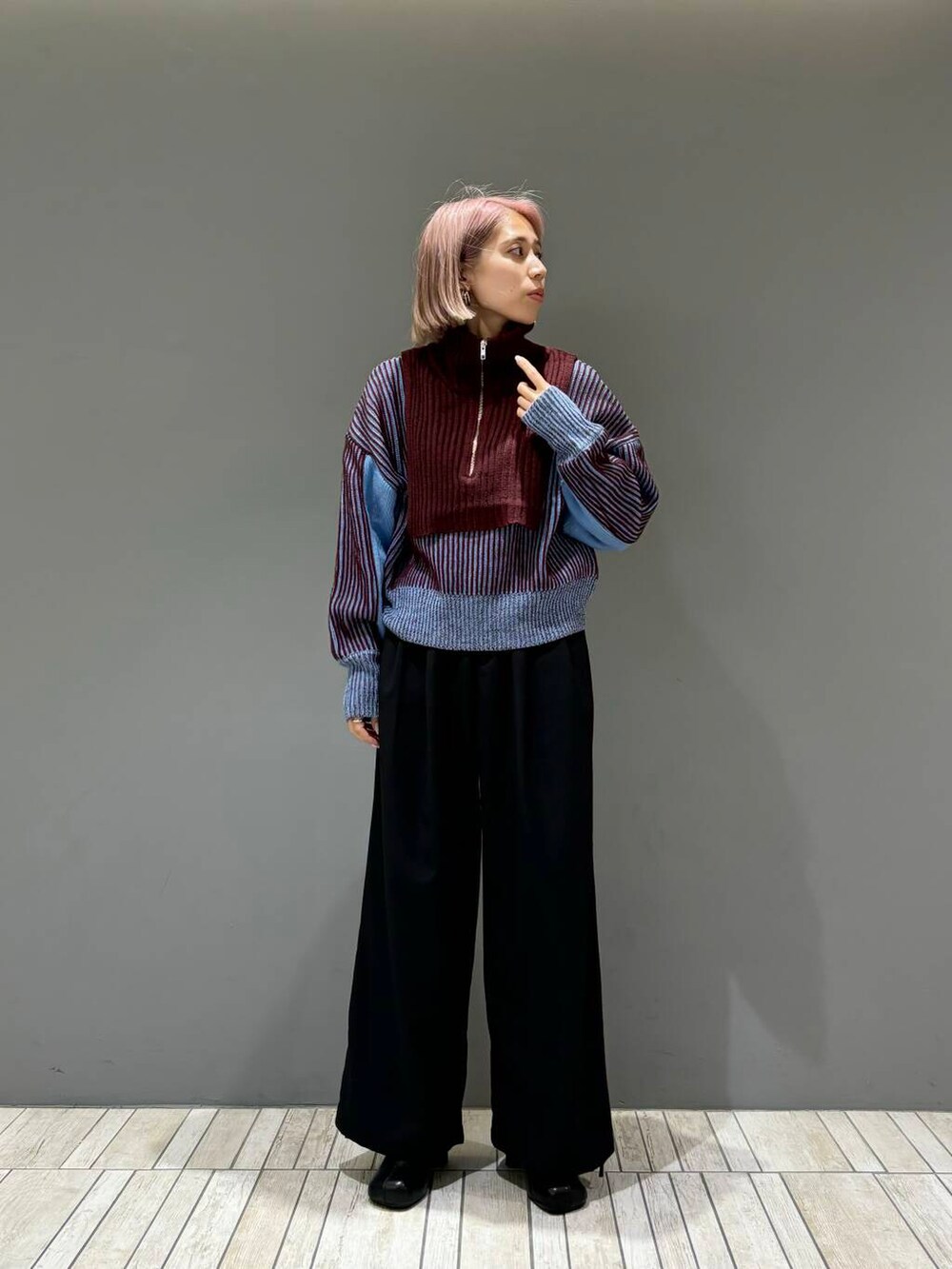 レイヤードハーフZIPニットとペインタースラックスを着用しました★