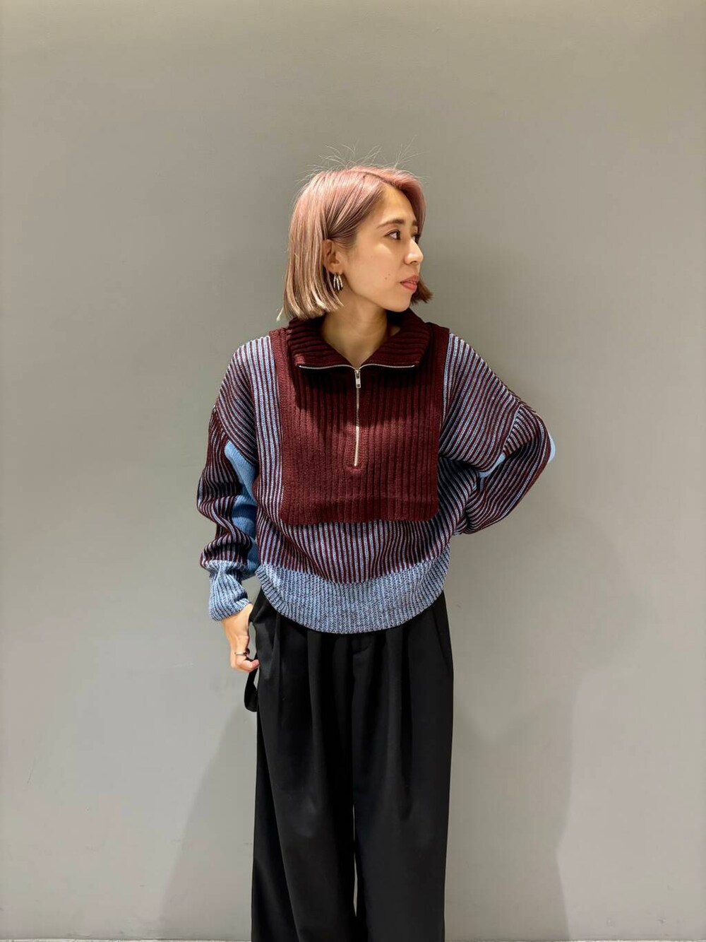 レイヤードハーフZIPニットのzip部分を開けて着用ました♪