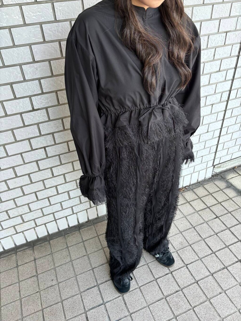パンツ全体にフリンジとチュールが施された、1枚で華やかな印象に仕上がるデザイン性抜群のアイテムです🪄ウエストゴムで楽な履き心地を叶えつつも、足のラインを拾わずに綺麗に見えるシルエットにも注目です!!