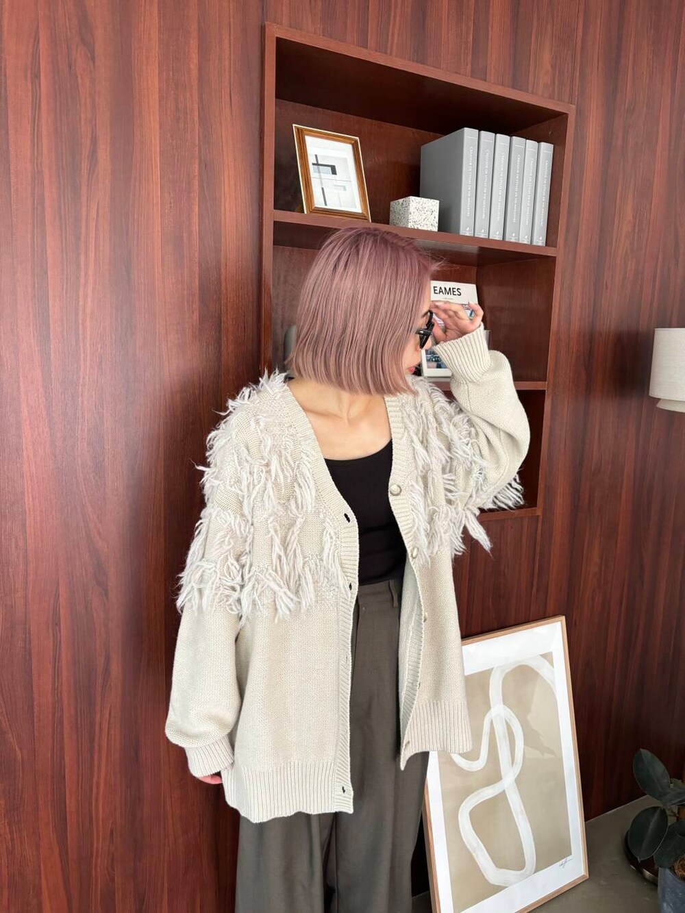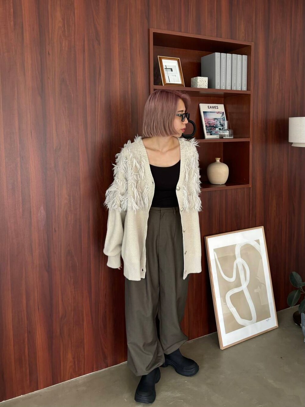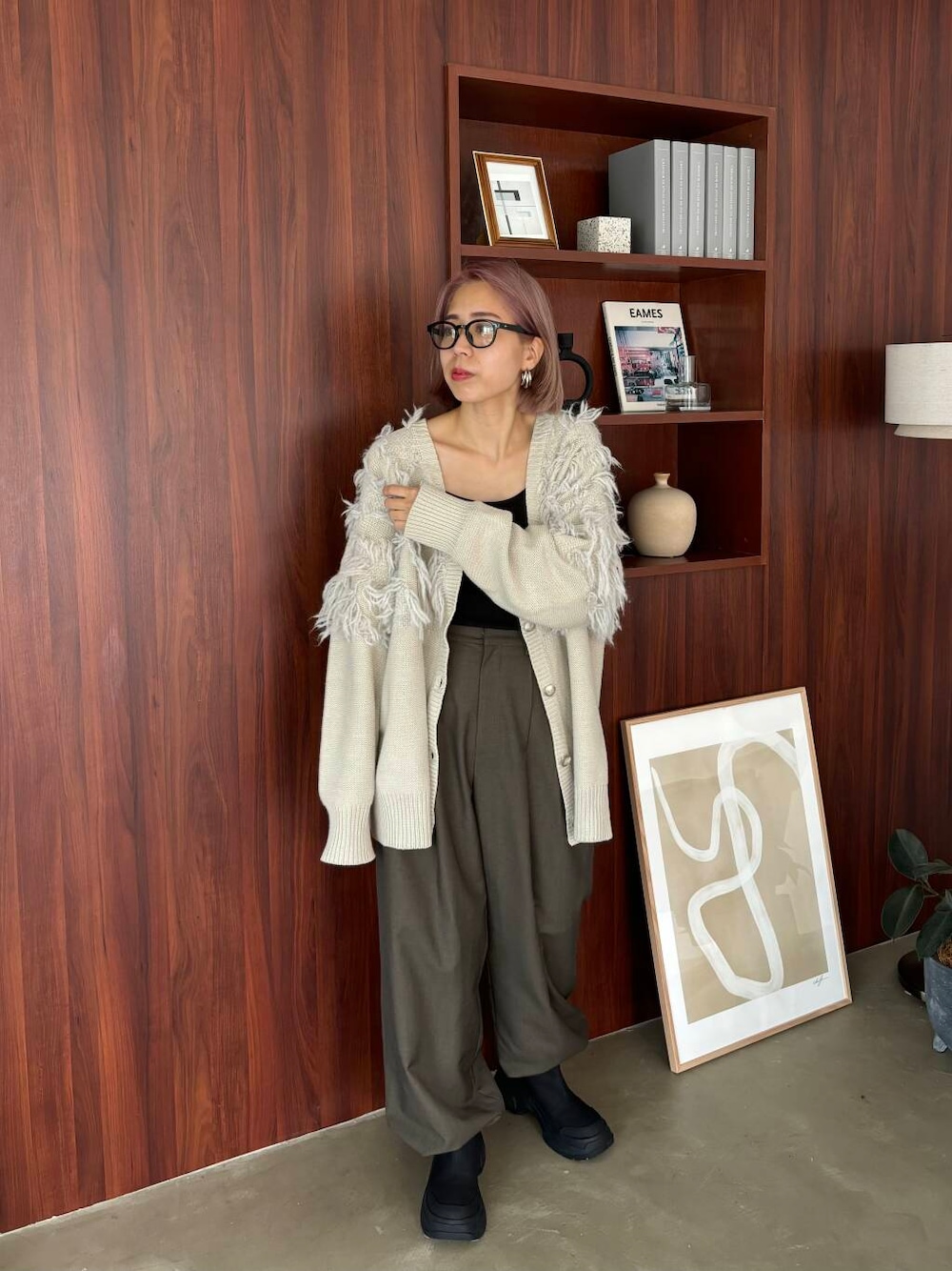 ジャガードフリンジカーディガンのIVORYを着用しました♪
