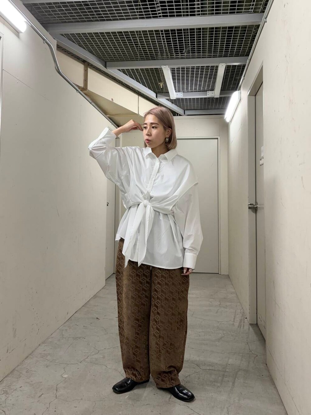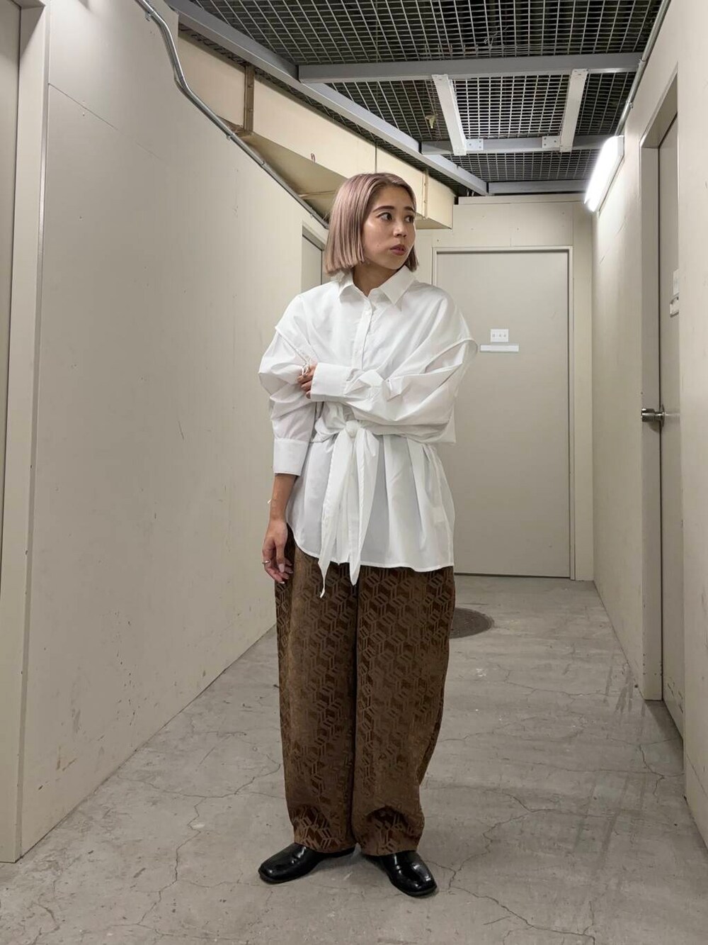 ジャガードコクーンパンツとレイヤードBIGシャツを合わせて着用しました♪