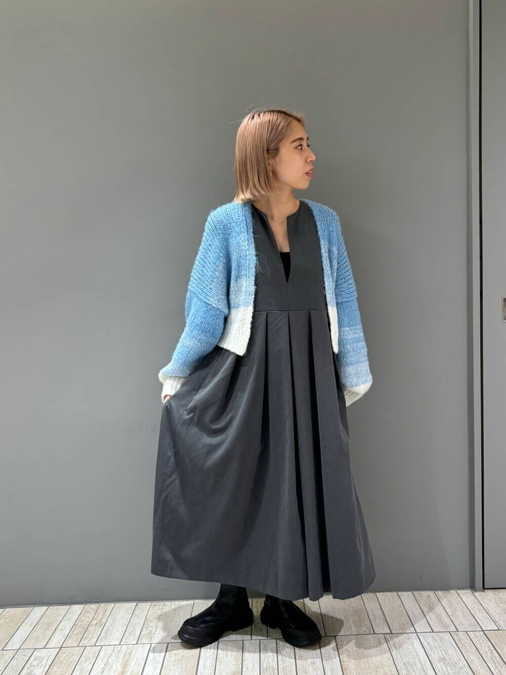 キーネックBIGプリーツジャンパースカートは前後2wayなので雰囲気を変えてきていただけます♪
