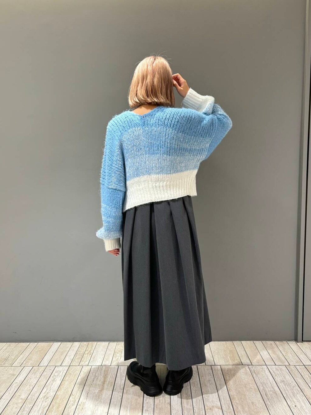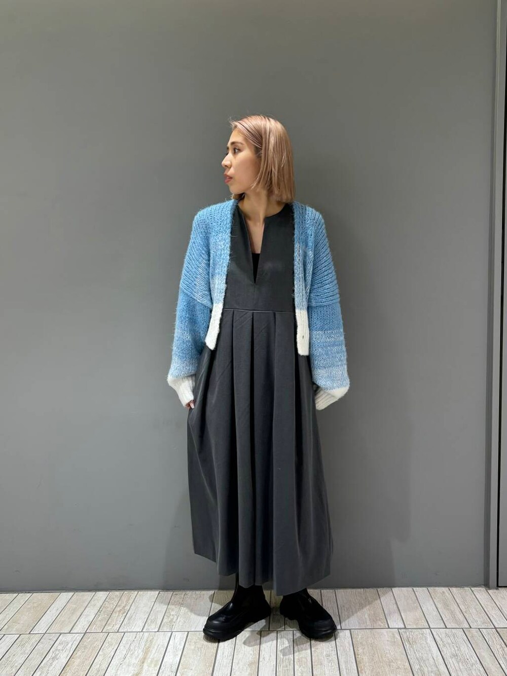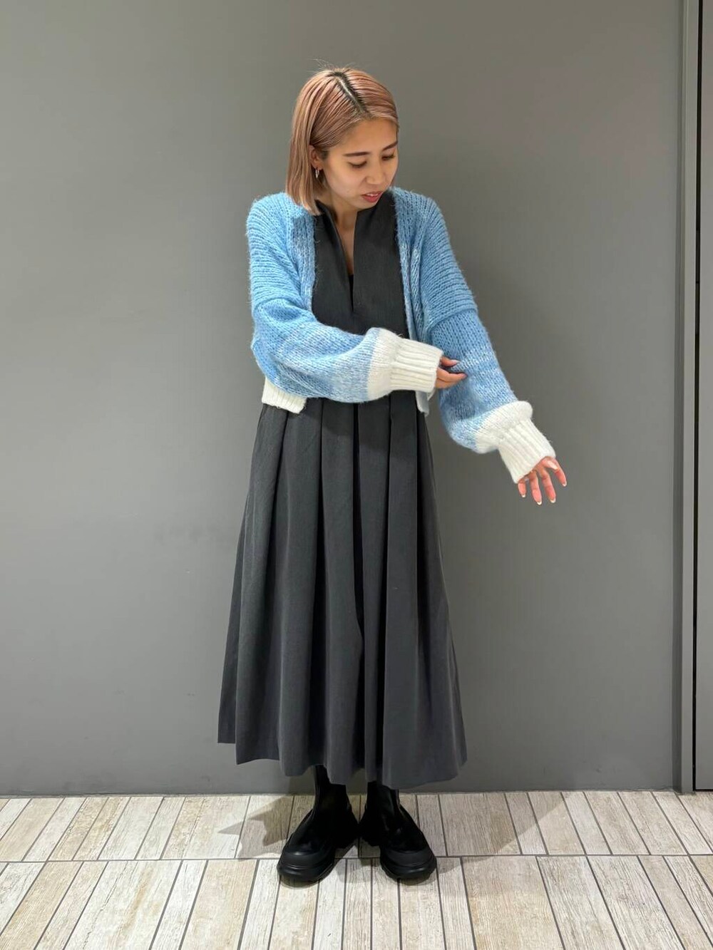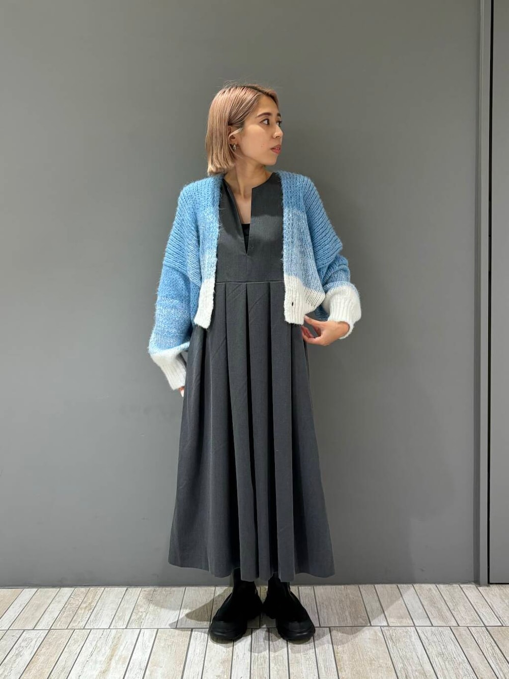 キーネックBIGプリーツジャンパースカートは前後2wayなので雰囲気を変えてきていただけます♪