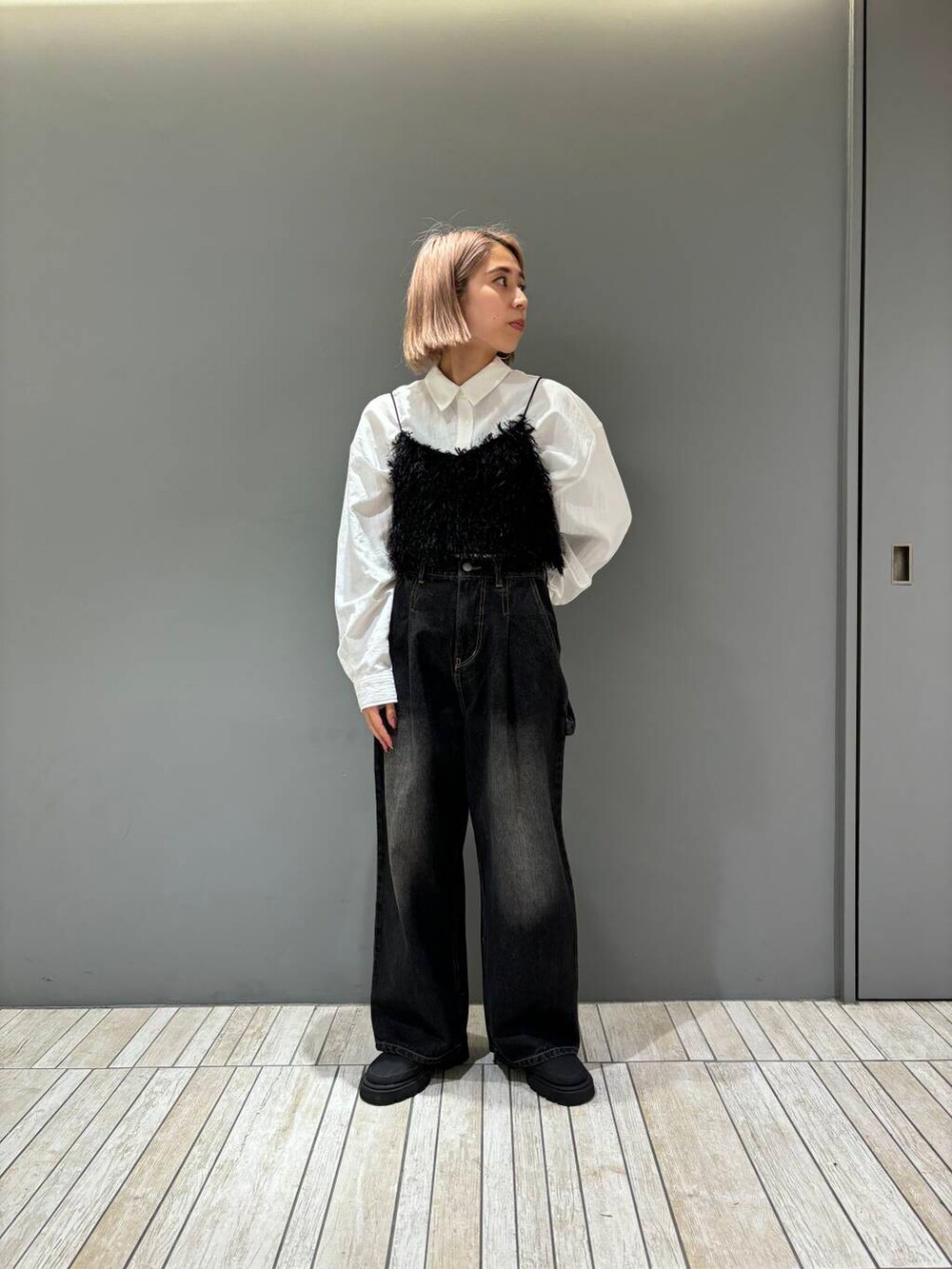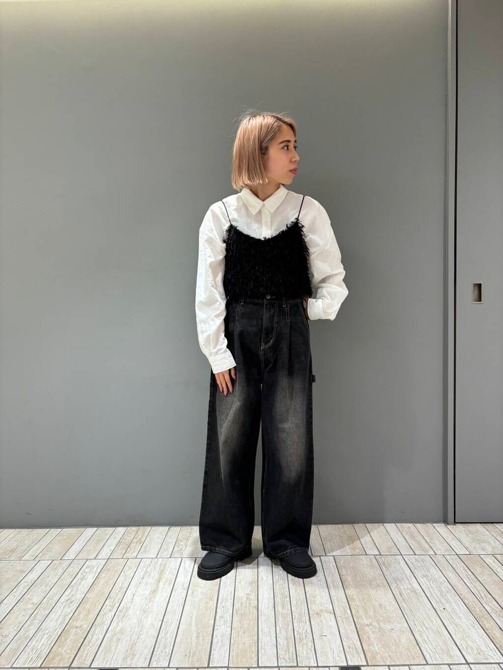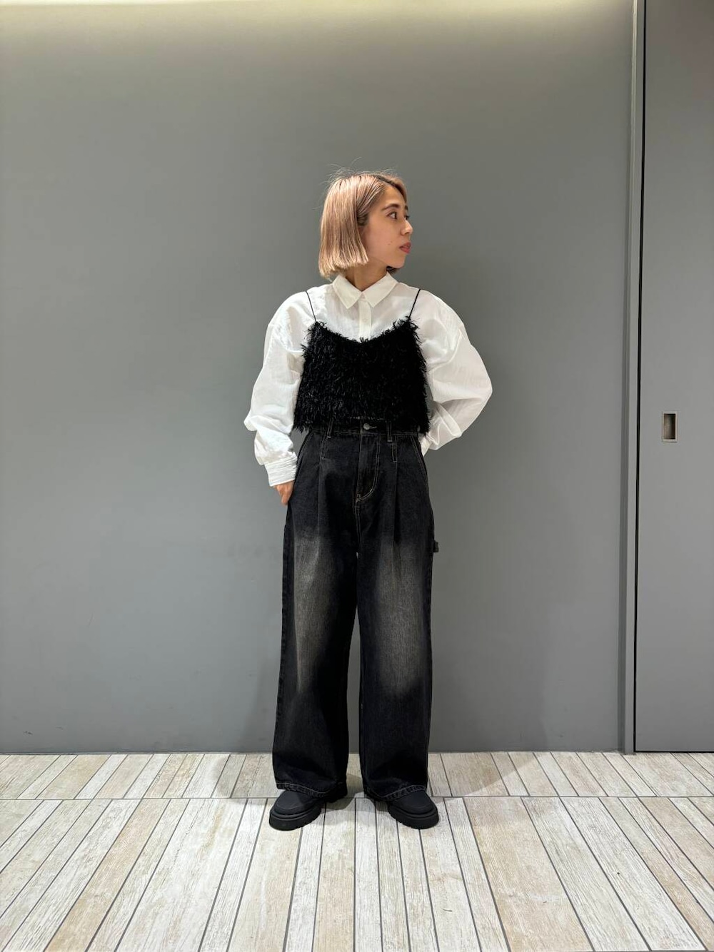 シャギービスチェとペインターWIDEデニムとヘムドロストシャツを着用しました♪
