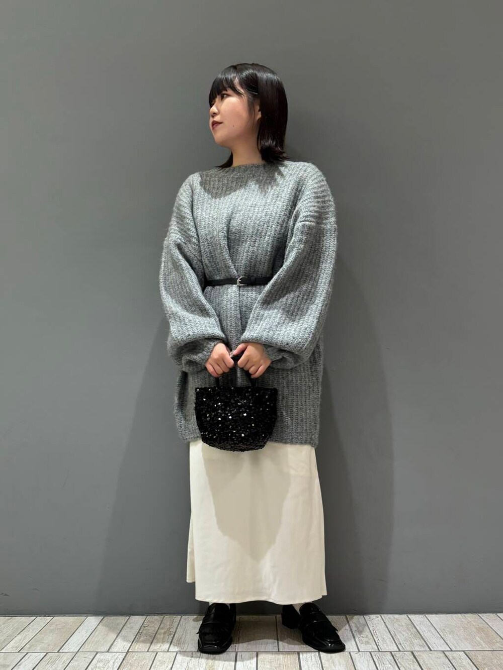 骨格ストレートさんはウエストマークして寸胴に見せないようにすると着膨れしやすい冬でも可愛いニットコーデできちゃいます👍🏻