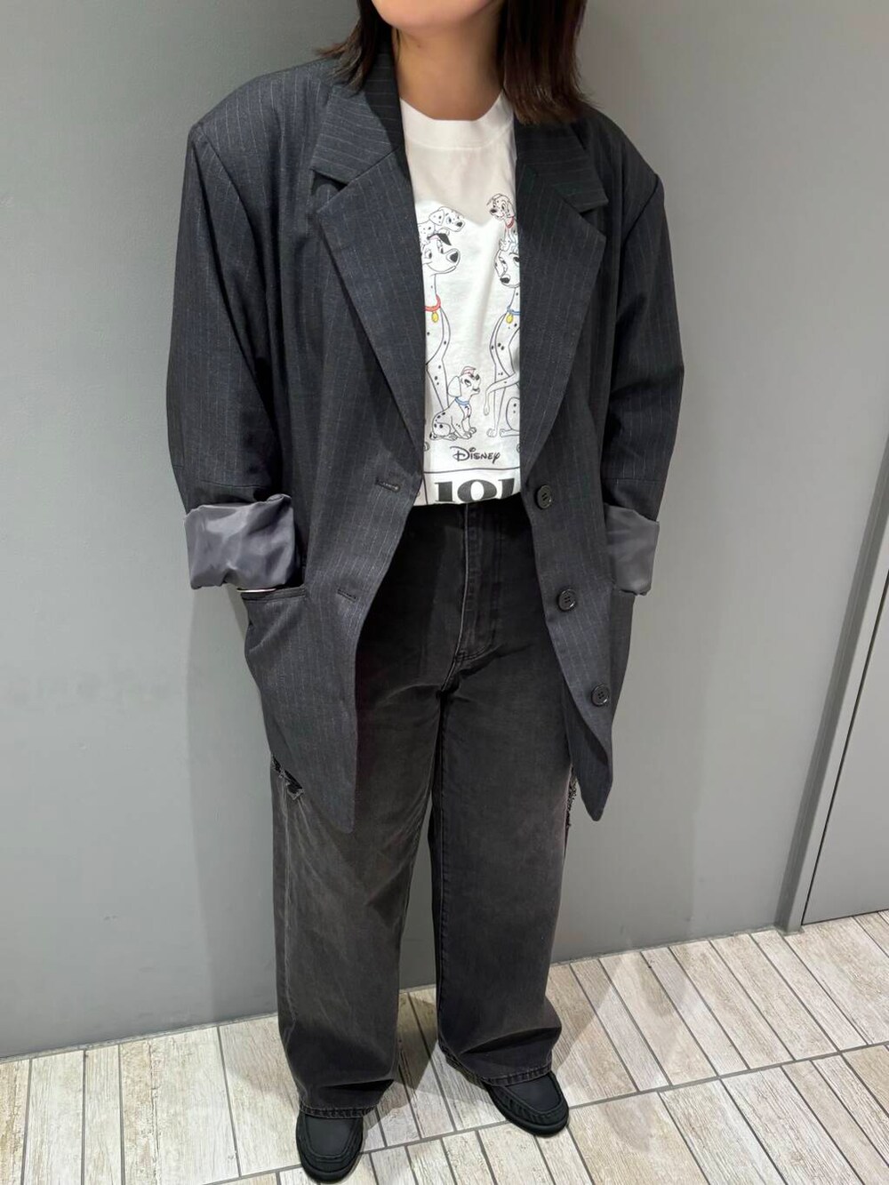 同素材のタックストレートスラックスと合わせてセットアップで着たり、デニムと合わせてキレイめカジュアルや、キャップなどを被ってメンズライクにしても可愛いです!♡