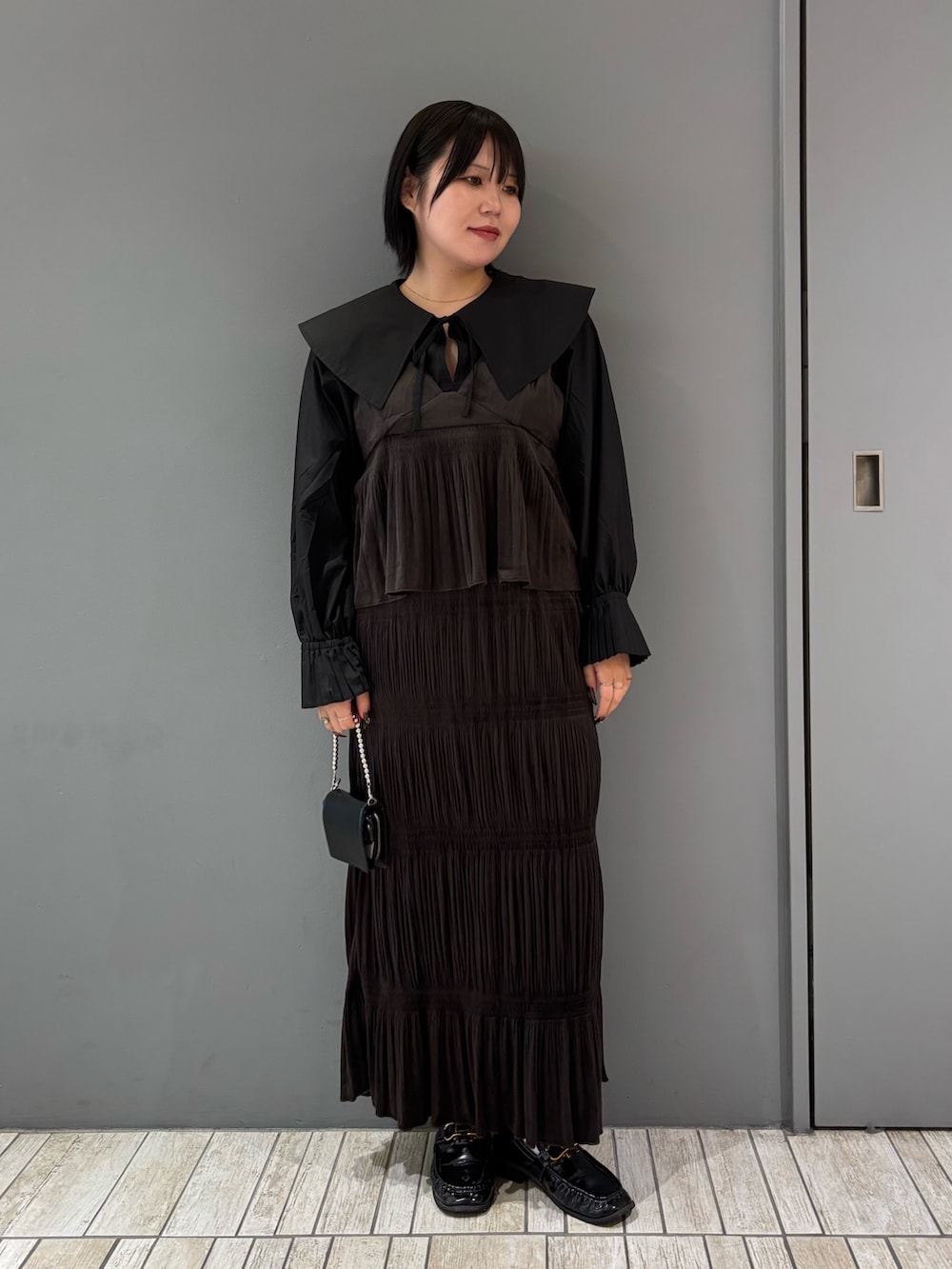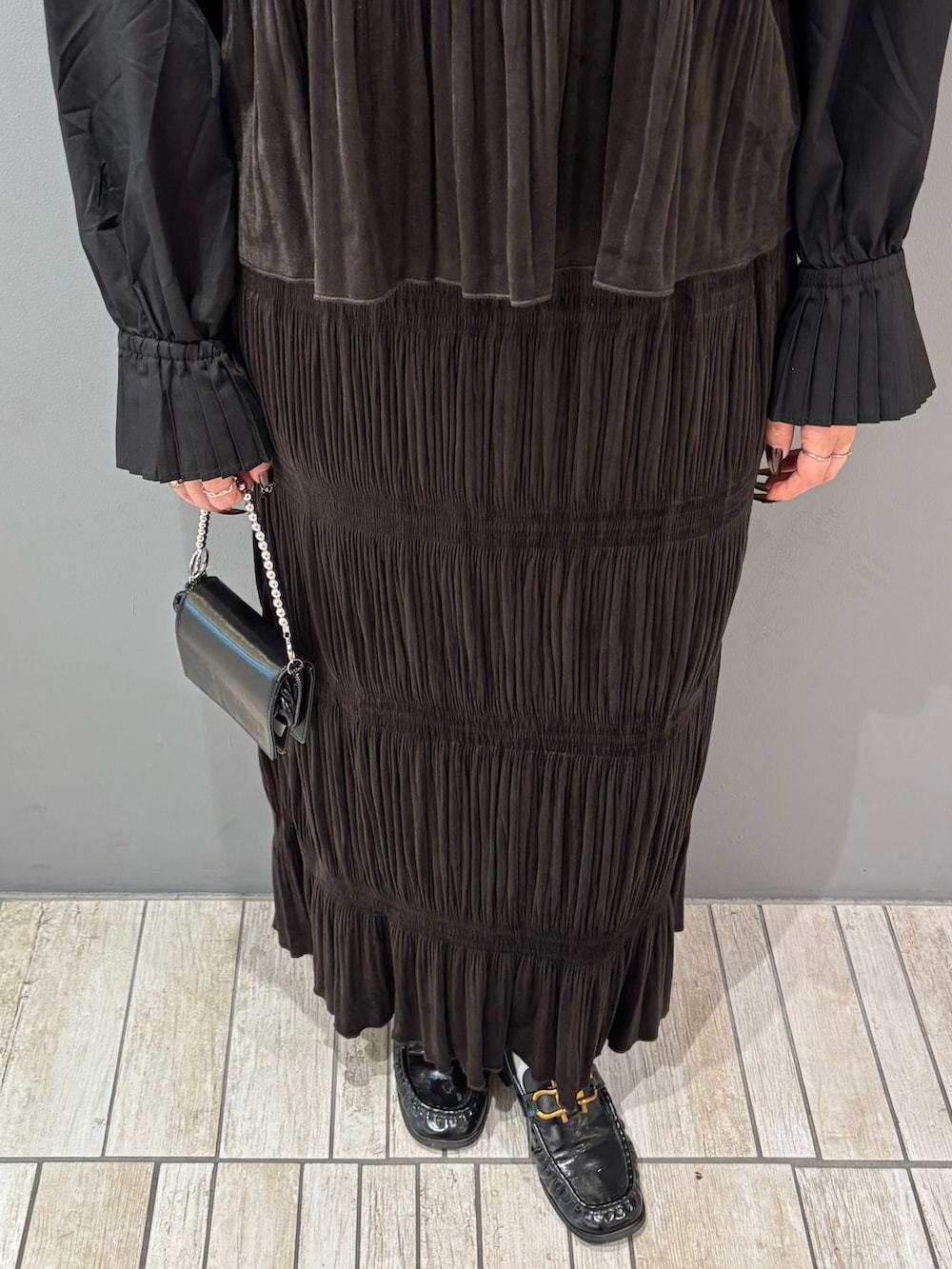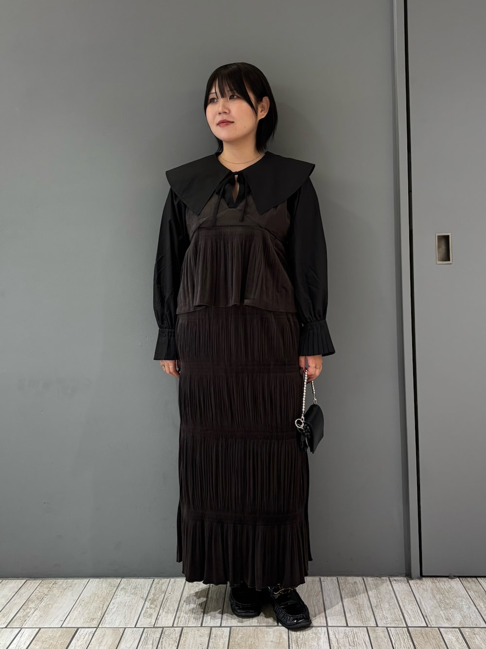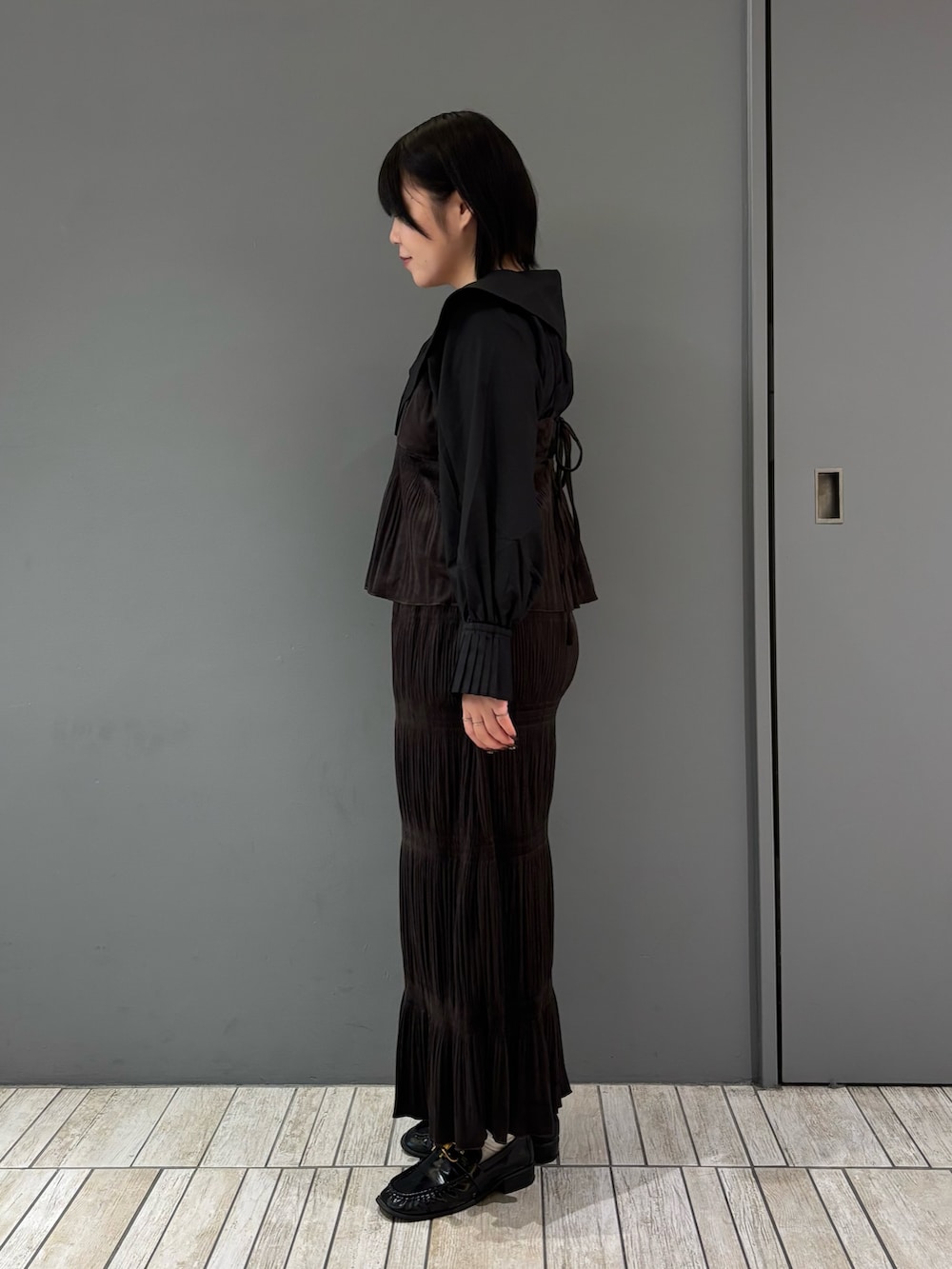 ビスチェは肩紐の長さを調節できるので中に着るインナーの分厚さも考慮でき、スカートは総ゴムなのでストレスフリーな履き心地です✊🏻