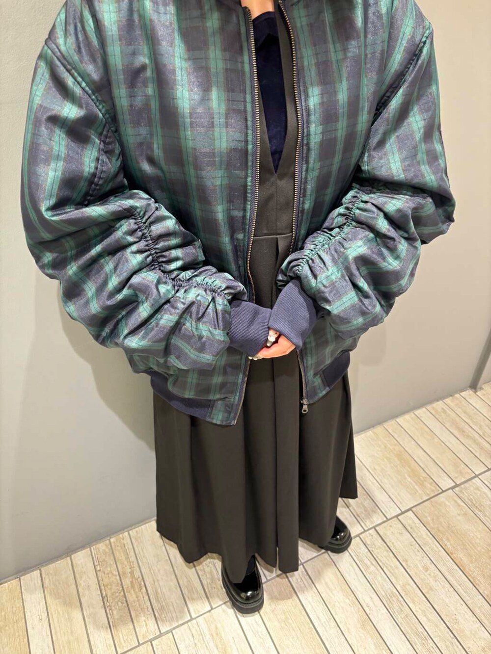 メンズライクなMA-1に女性らしさをプラスした丸山礼さんコラボアイテムです💖袖にたっぷりと施されたギャザーと全体的に丸みのあるシルエットが可愛すぎます...!!!丈感はおしりまで隠れる長さ&オーバーサイズな作りで中に着るトップスを選ばずに着ていただけます👍🏻