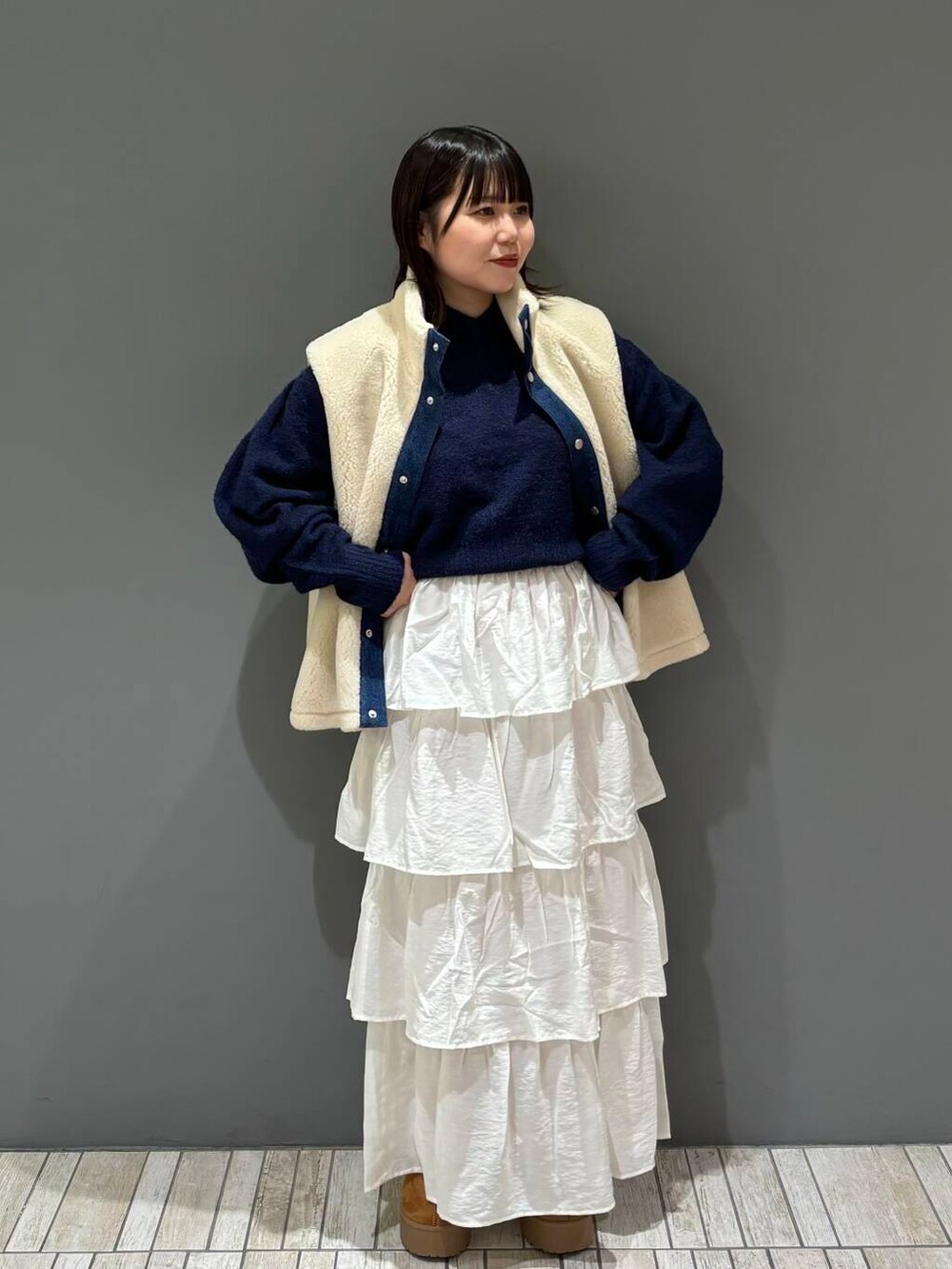 フレアのティアードデザインが動く度に可愛い新作アイテムです!膨らみがちなティアードデザインですが、こちらはストンと落ちるIラインシルエットになっているのでガーリー過ぎずに着ていただけます🫶🏻