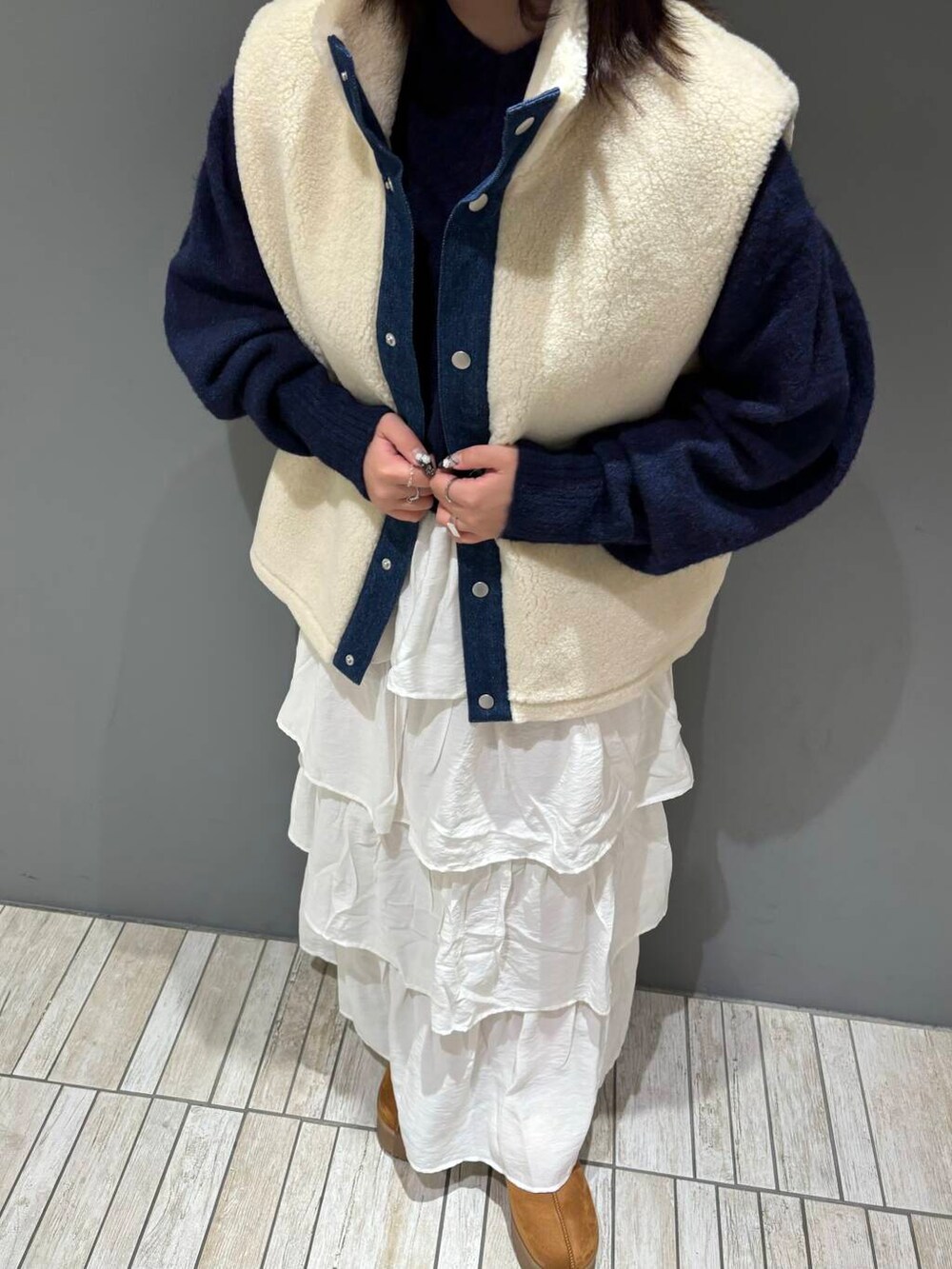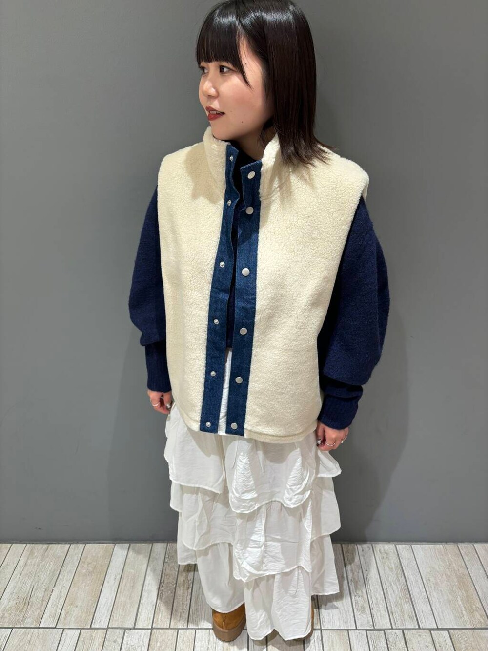 ボアベストとデニムジャケットがセットになったコスパ最強アイテムです👍🏻デニムジャケットは少し薄手の生地になっているのでオールシーズン使っていただけます!ボアベストは着るだけで一気に秋冬感が出てくれるのと、アウターまではいらないなという気温の時に使える優れものです!!