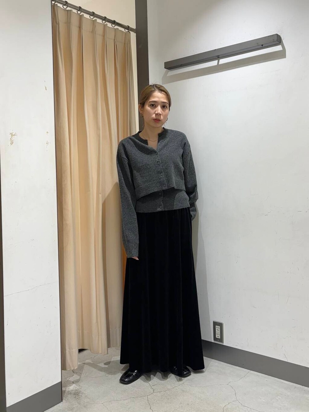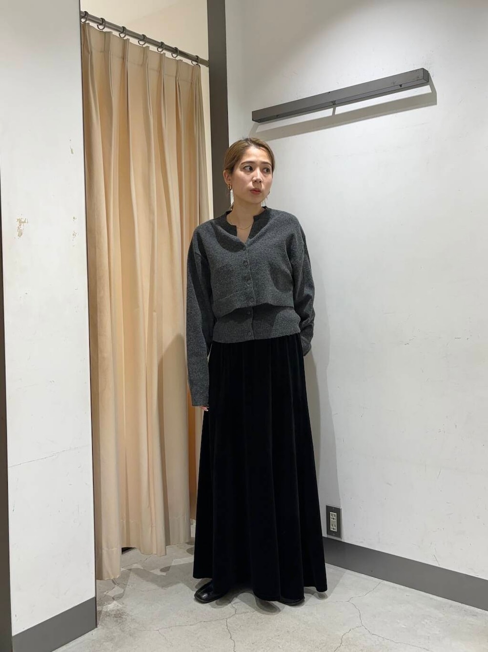 マルチビスチェSETカーディガンとセミフレアベロアスカートを合わせて着用しました♪