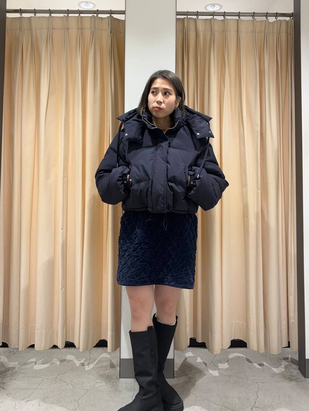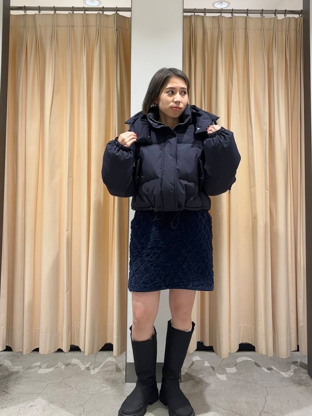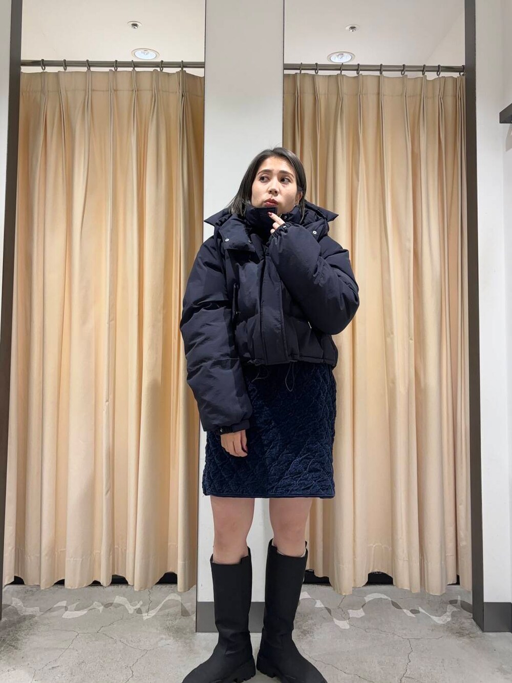 ショート中綿フードジャケットとキルティングニットスカートを着用しました☆