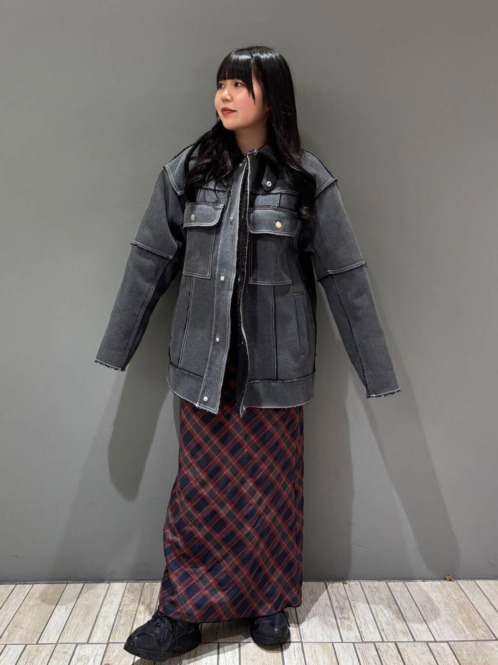 秋スウェットやブルゾン、ジャケットと合わせて着るのがオススメ!!冬はダウン合わせで可愛く着ちゃいましょう🫶🏻