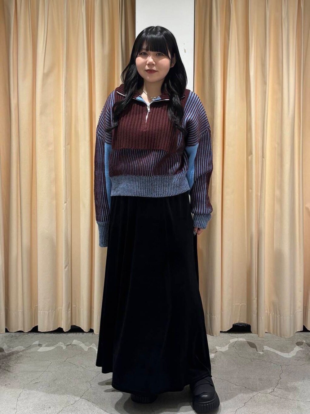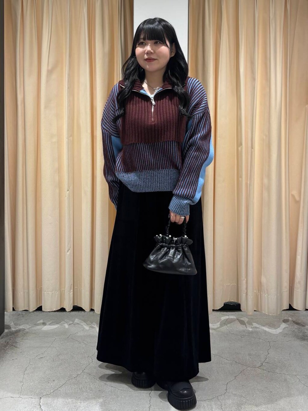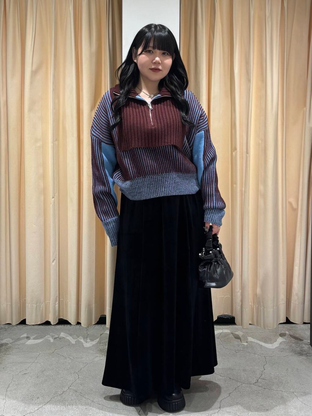 今回は、大人気のニットを使った大人っぽキレイめコーデを組んでみました!ベロアのスカート合わせおすすめですヨ👀