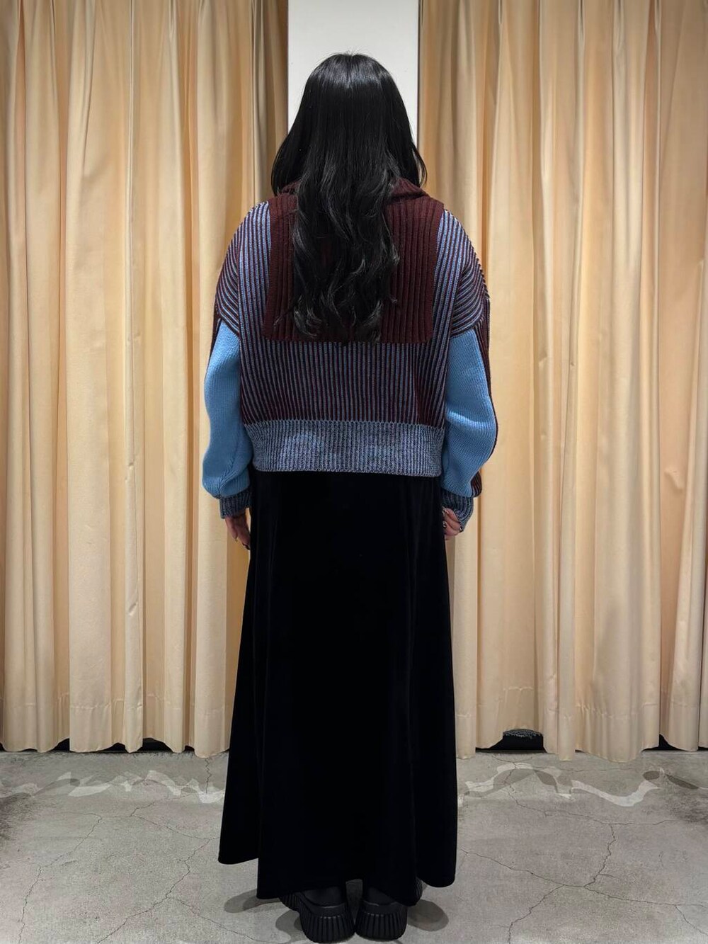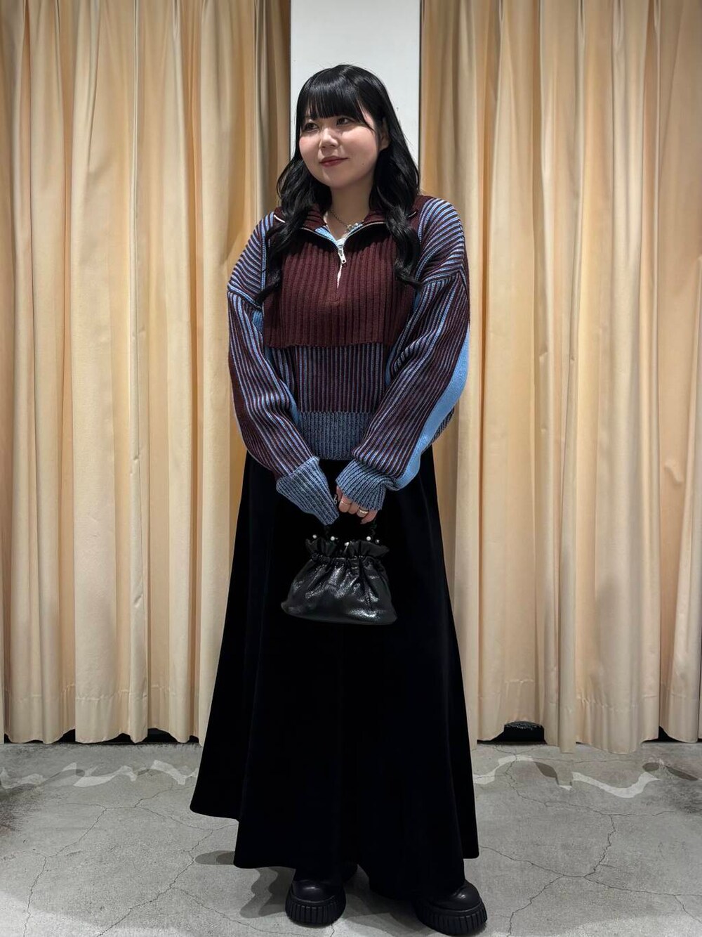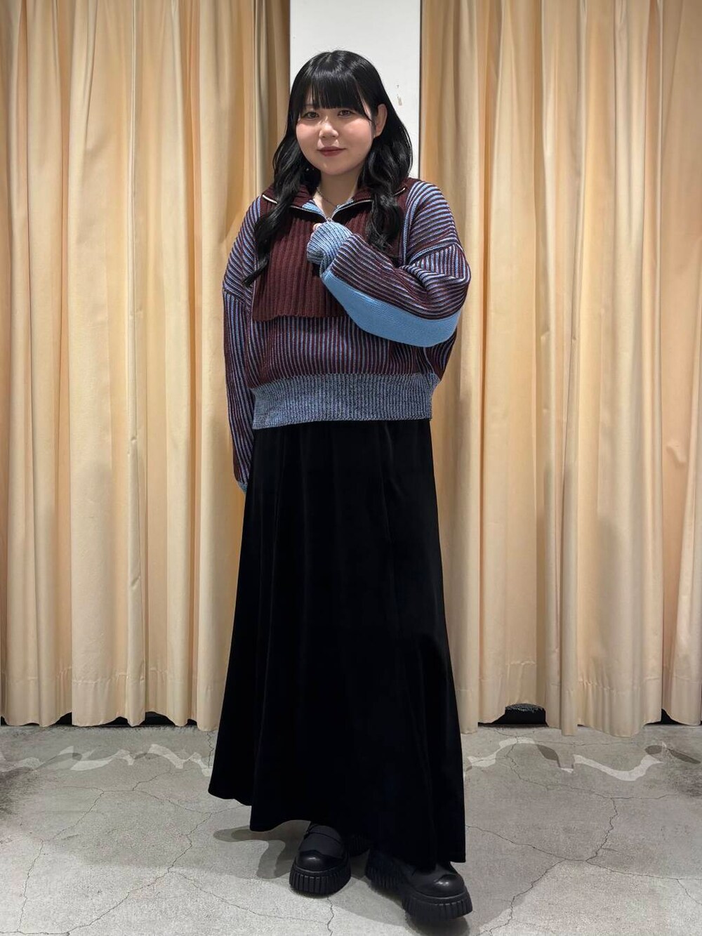 今回は、大人気のニットを使った大人っぽキレイめコーデを組んでみました!ベロアのスカート合わせおすすめですヨ👀