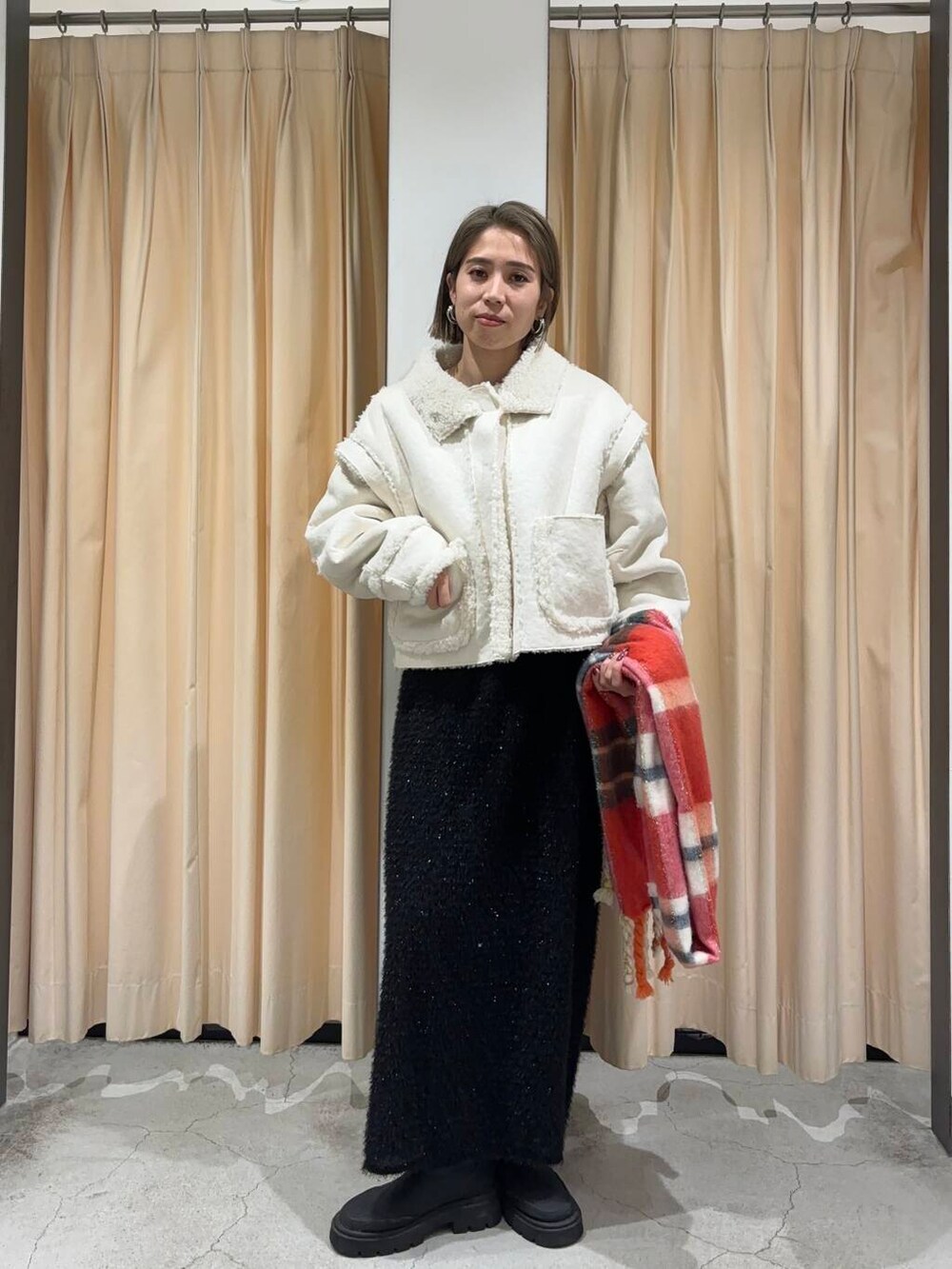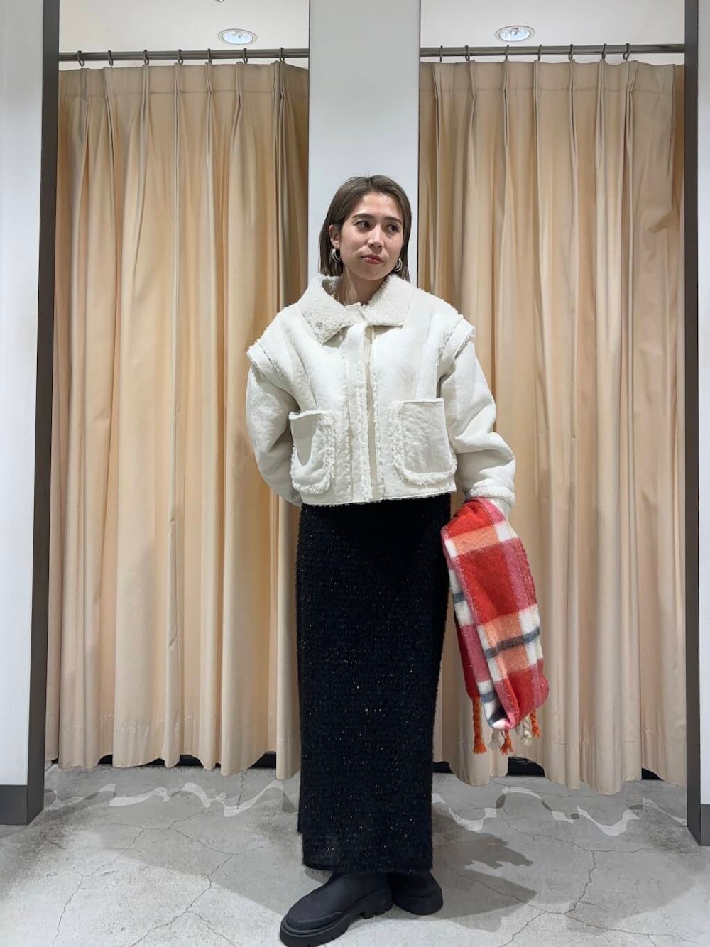 マルチWAYボアジャケットとラメフェザースカートを着用しました!