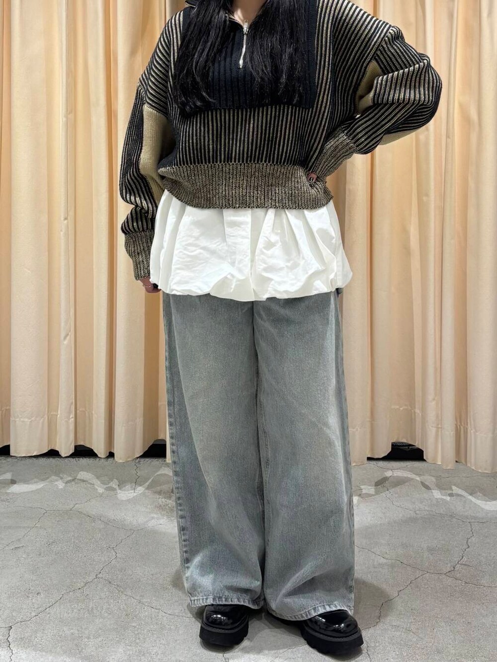 予約時から大人気だった新作デニムが店頭に入荷してきました〜!!!オーバーダイを施しているのでヴィンテージライクな質感がとても可愛いです🫶🏻比較的ゆったりとしたデザインのペインターデザインや、裾にかけて広がるワイドな形ではありますが、ウエストのタックで腰周りはスッキリ見せてくれる良いとこ取りのデニムです👌🏻