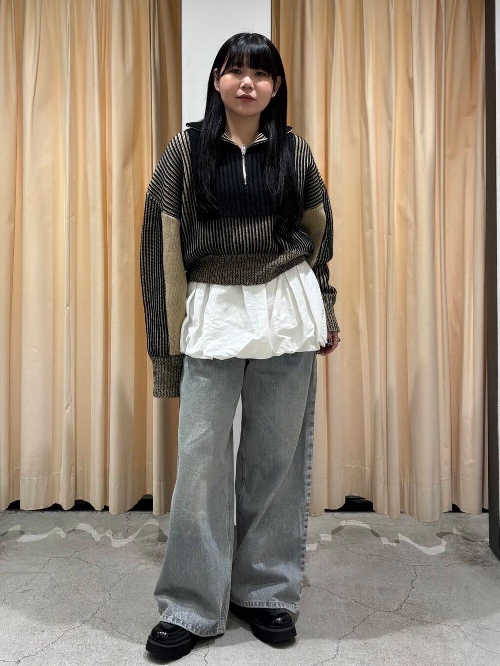骨格ストレートさんはスタンドネックにすると首が詰まって見えるので、ジップを開けて着て首元をスッキリさせると冬でも着痩せできます✨