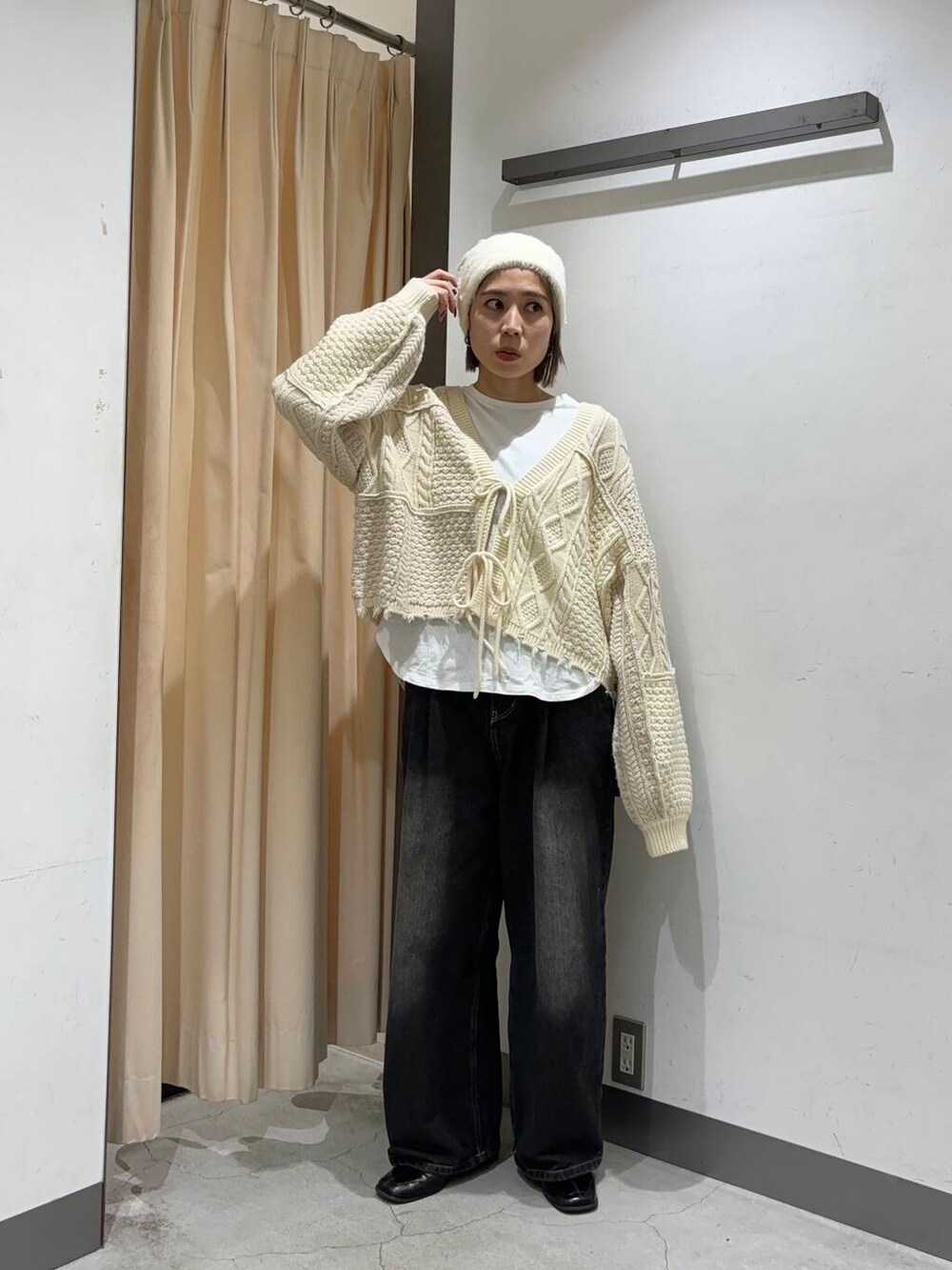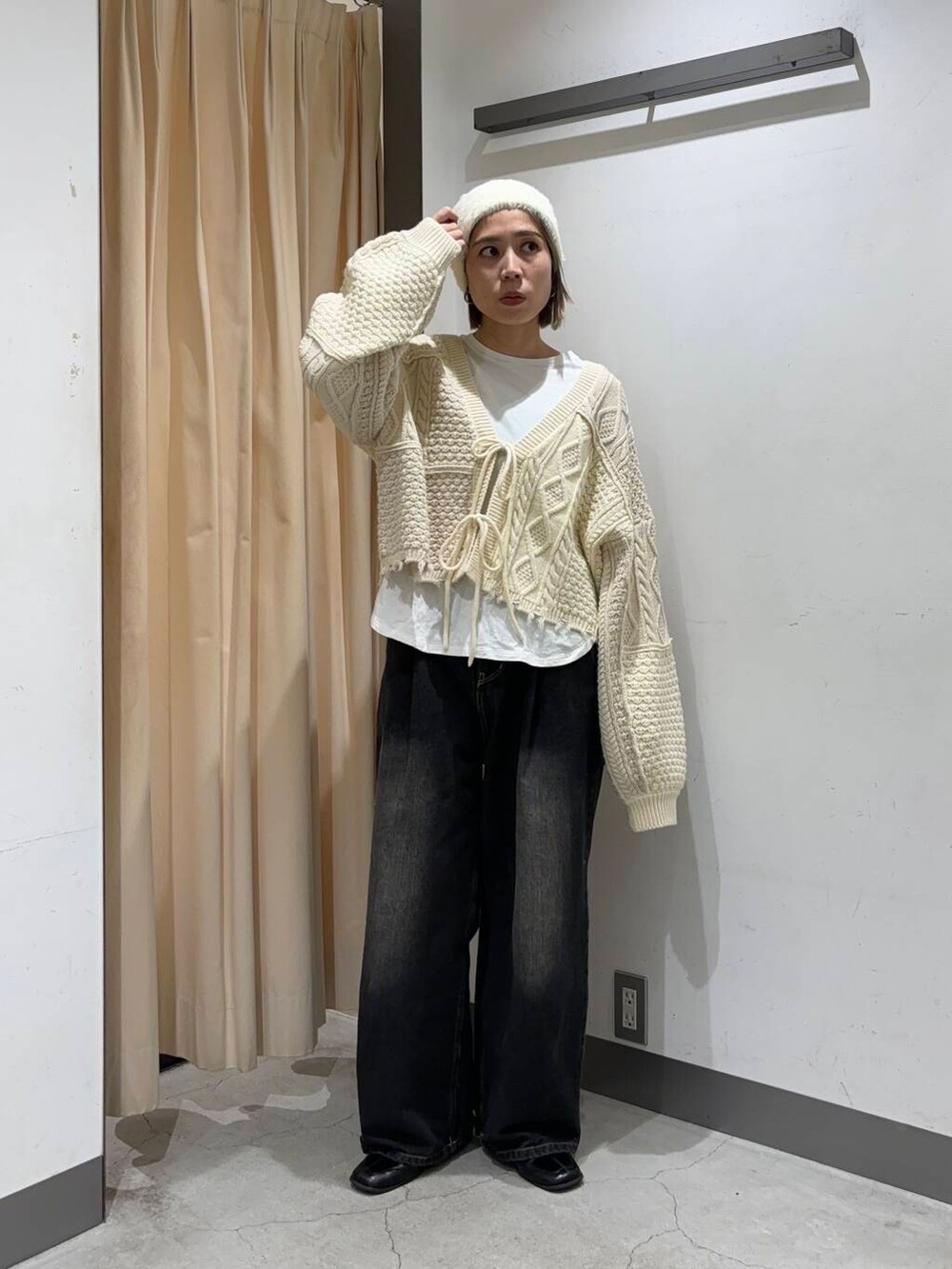 ケーブルパッチワークニットカーディガンとペインターWIDEデニムを着用しました★
