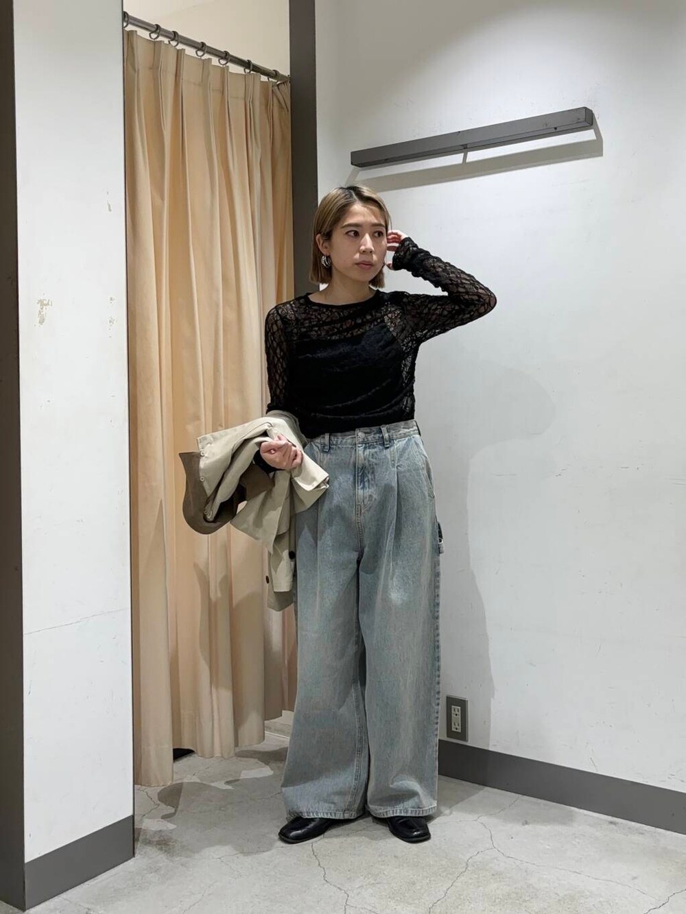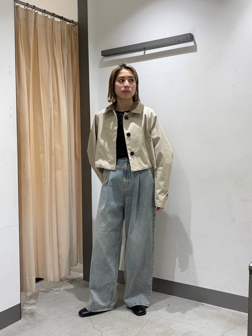 BACKフレアショートジャケットのなかにドレープレースTEEを合わせました!