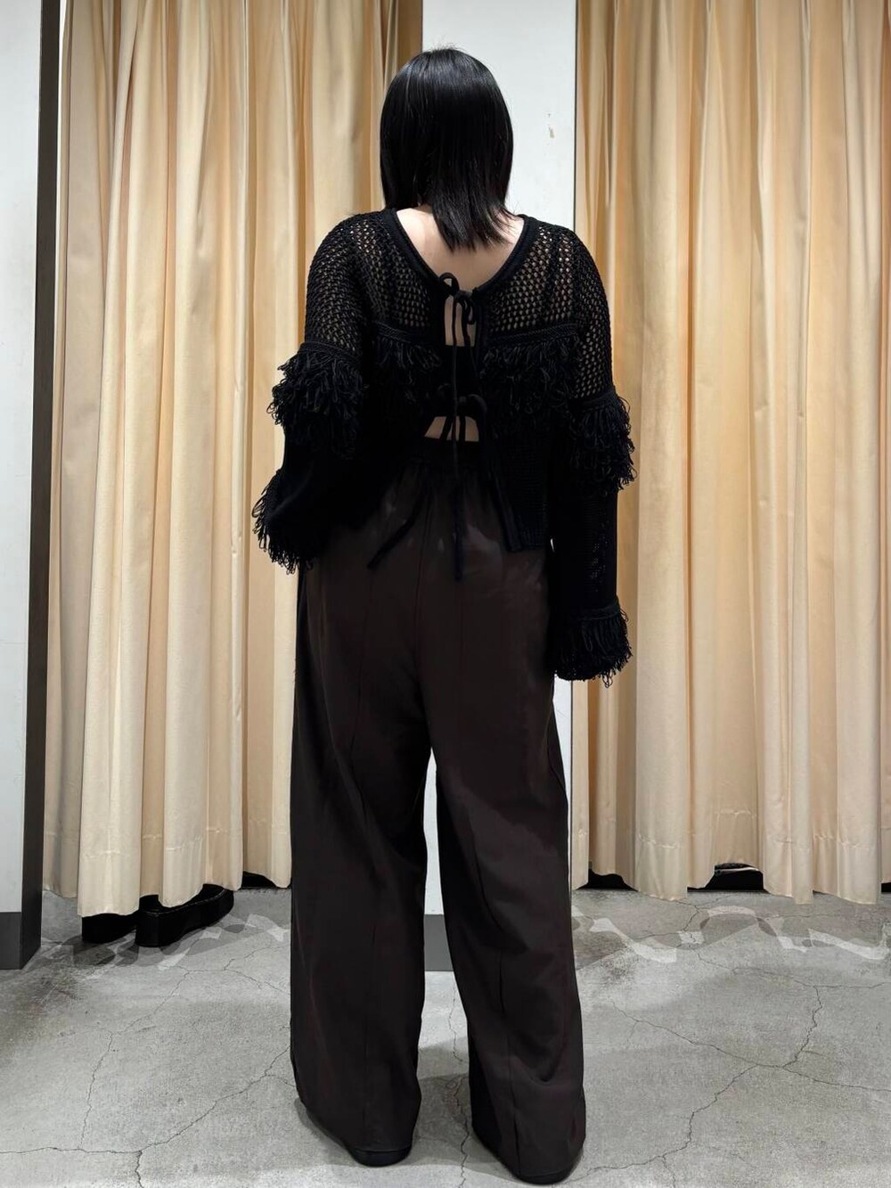 全体にはループ編みやメッシュ編みなど様々な編み方がMIXされているので、どこを切り取っても可愛い1着!しかも前後2WAYで着用できるので、リボンの部分を後ろに持ってきてプルオーバー風にも着ていただけます🪄