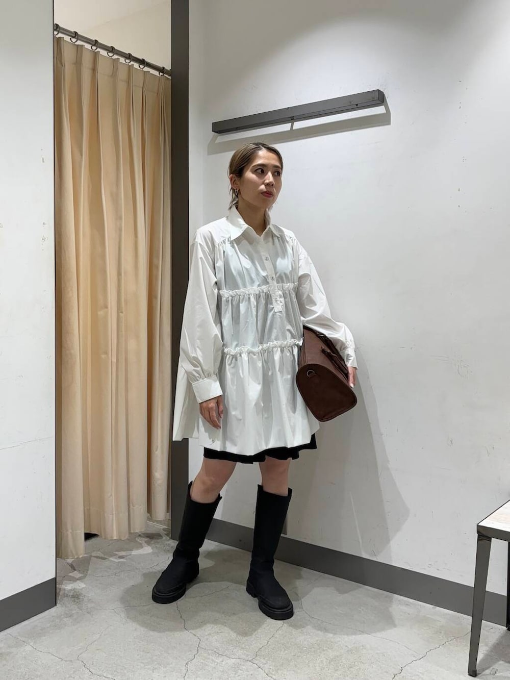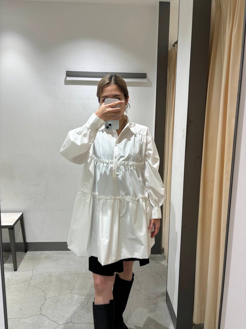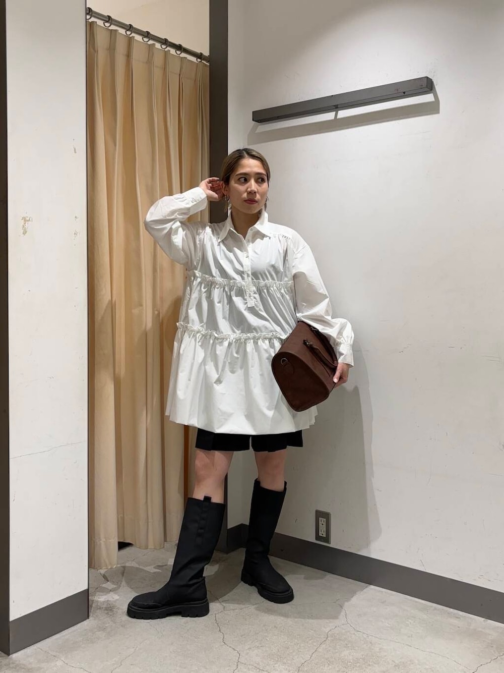 ティアードバルーンミニワンピースと私物のショートパンツを着用しました🤍