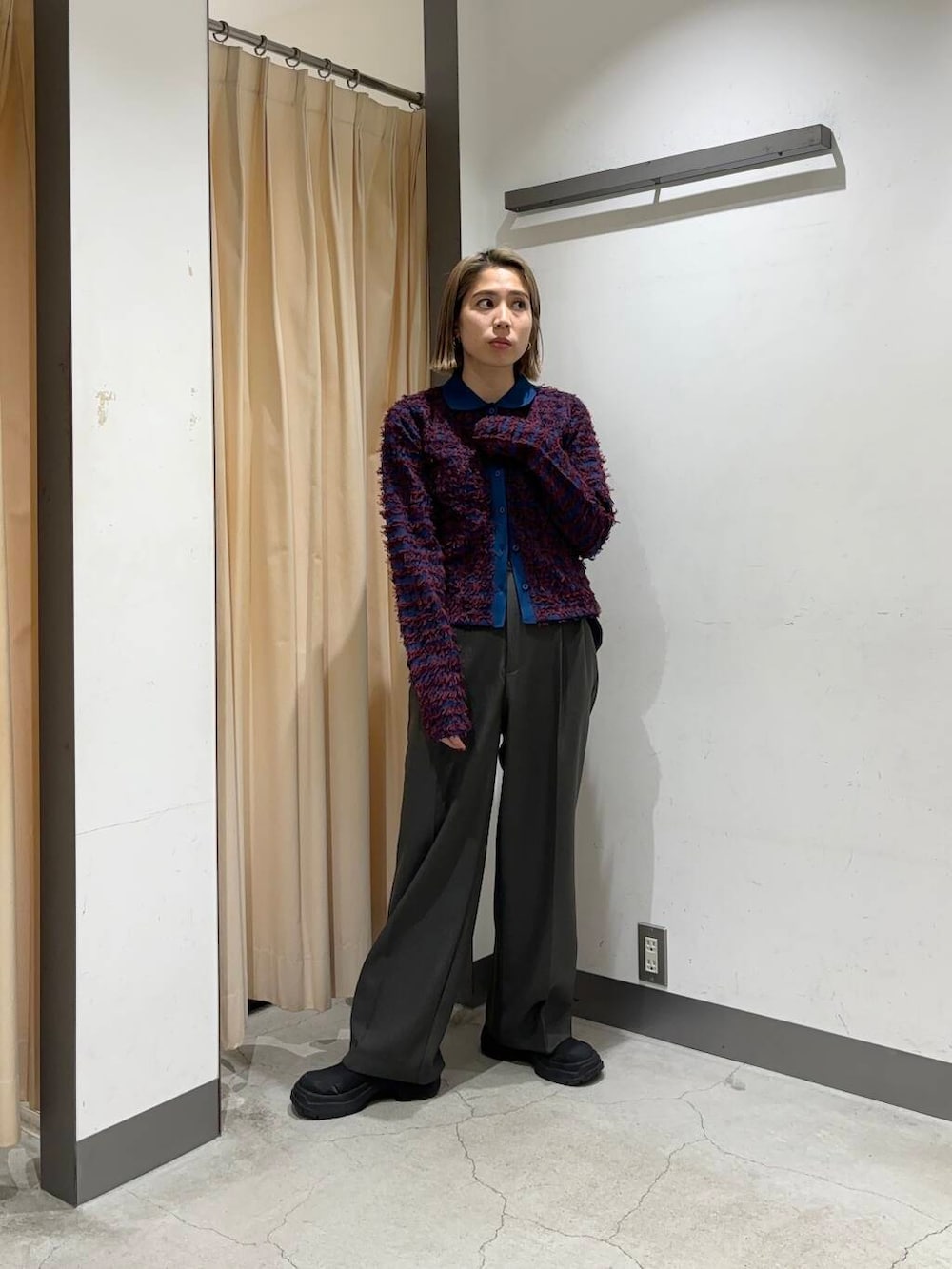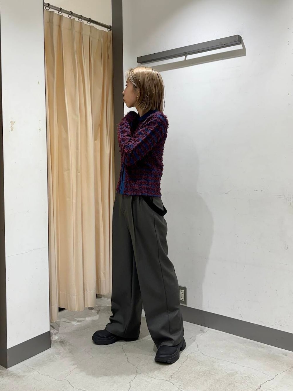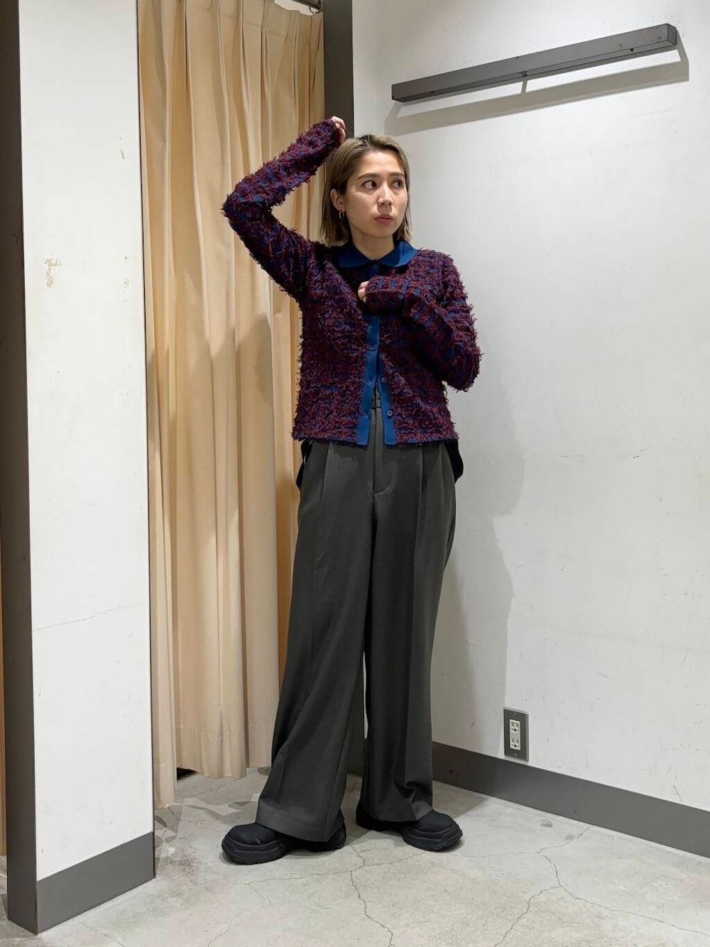 ツイードフリンジニットとハイウエストサスペンダーパンツを着用しました🌟