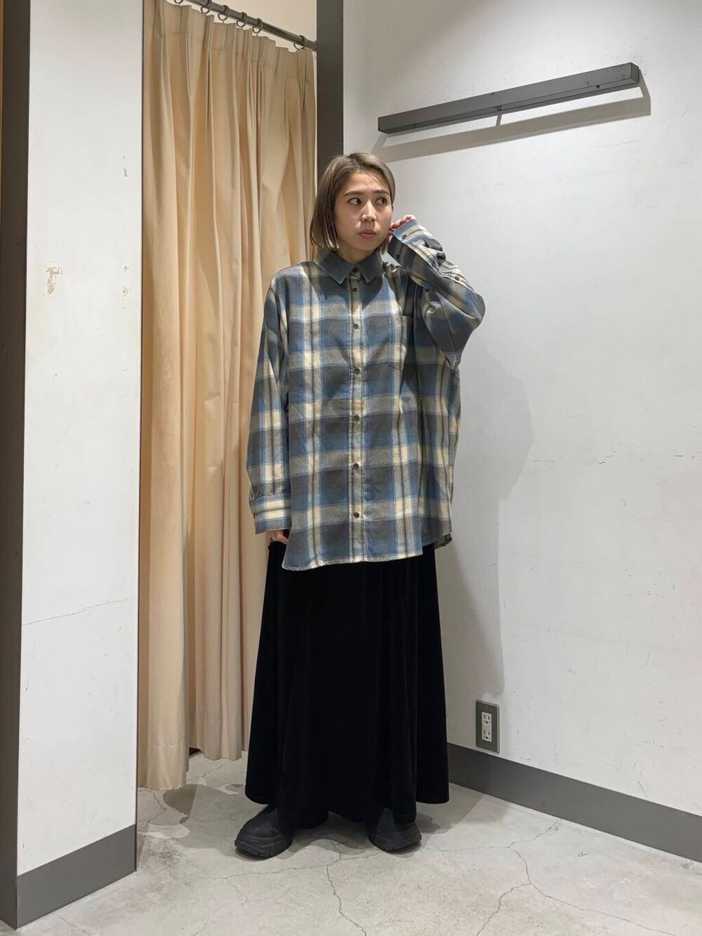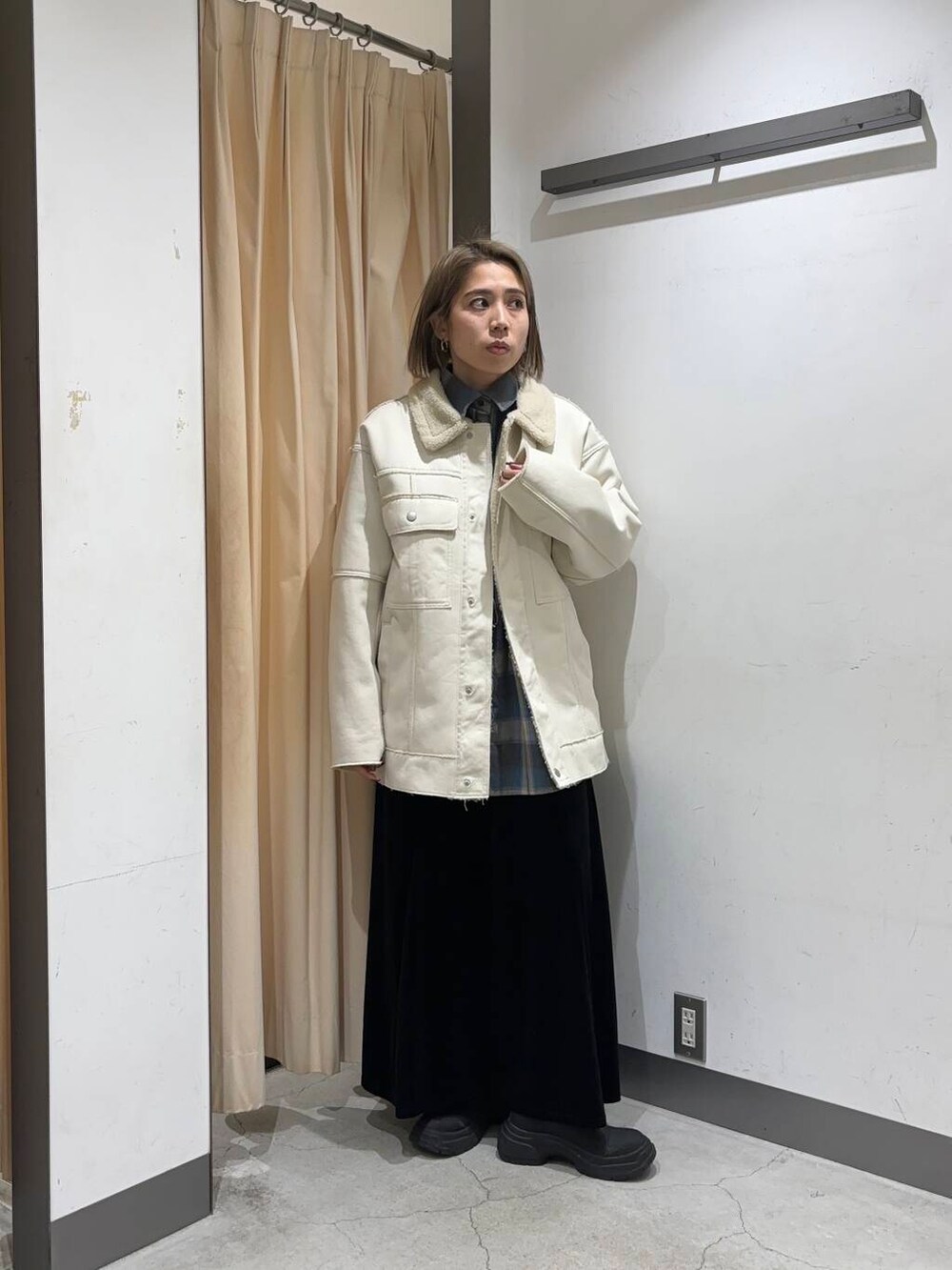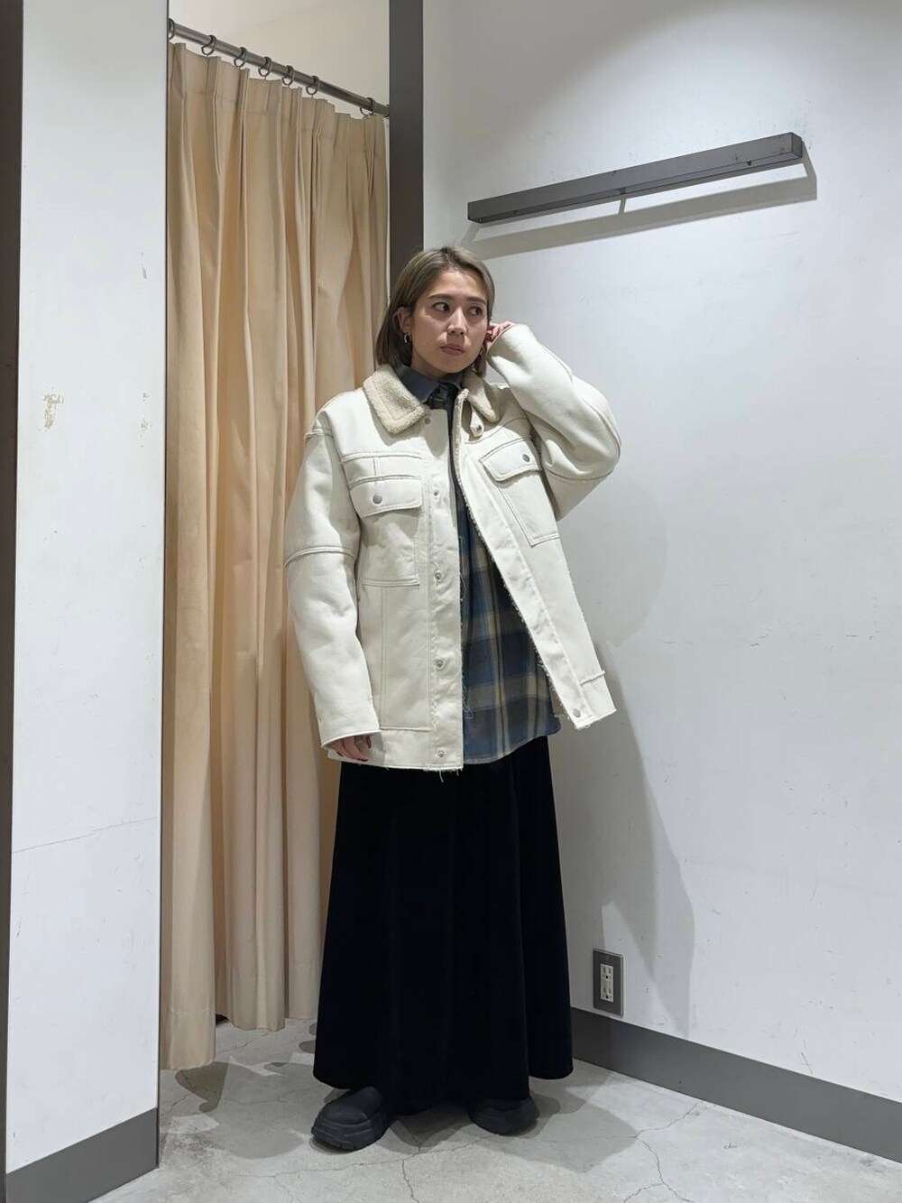 BIGチェックシャツとセミフレアベロアスカートとオーバーサイズボアジャケットを着用しました★