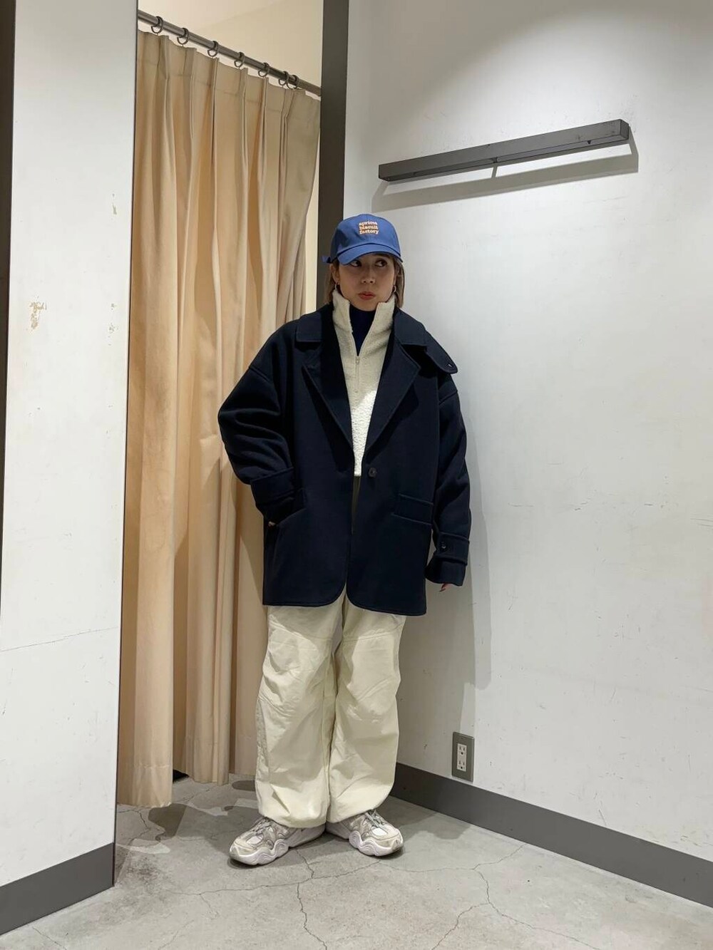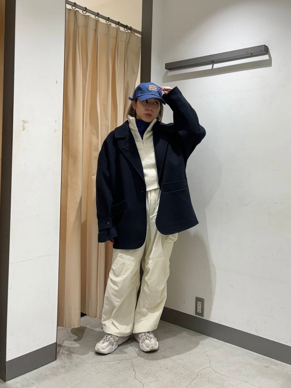 ランダムRIBハイネックニットとキャップを差し色でコーディネートしてみました🩵