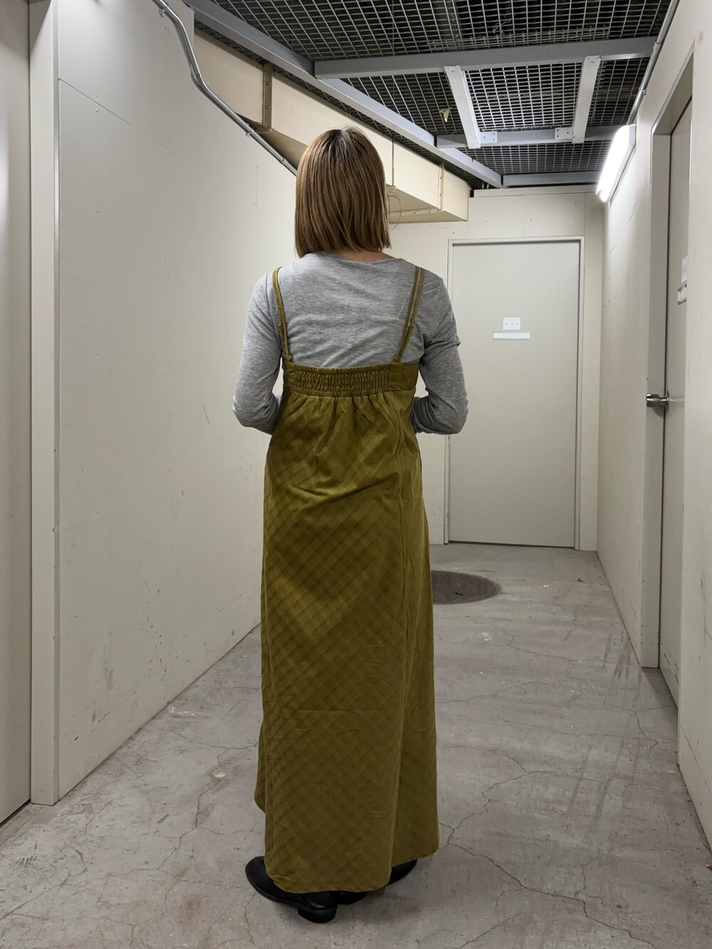 チェックコーデュロイキャミワンピースは肩紐は2WAYになっており、1本取り外し可能なのでチョーカーぽくするのもおすすめです!