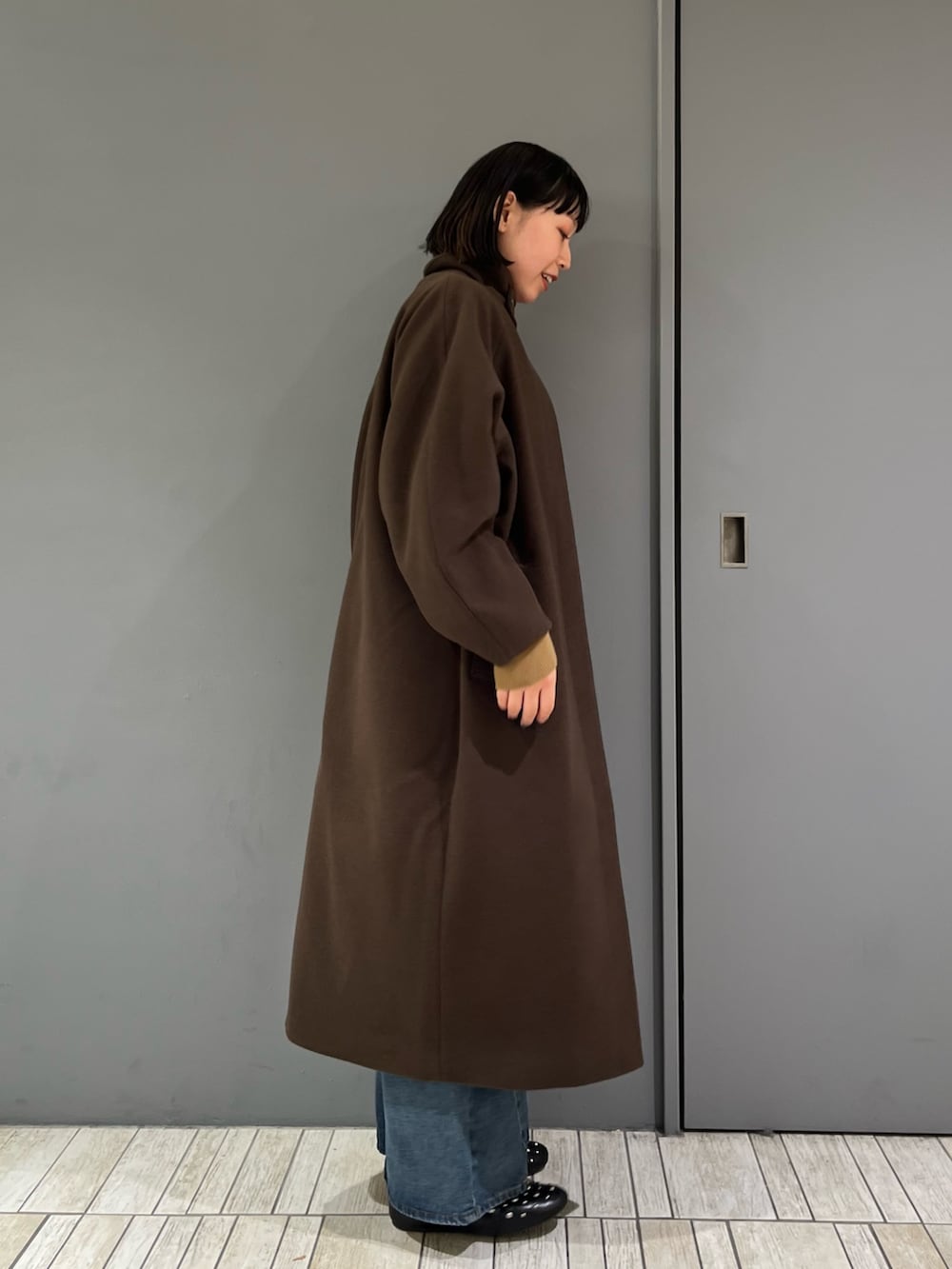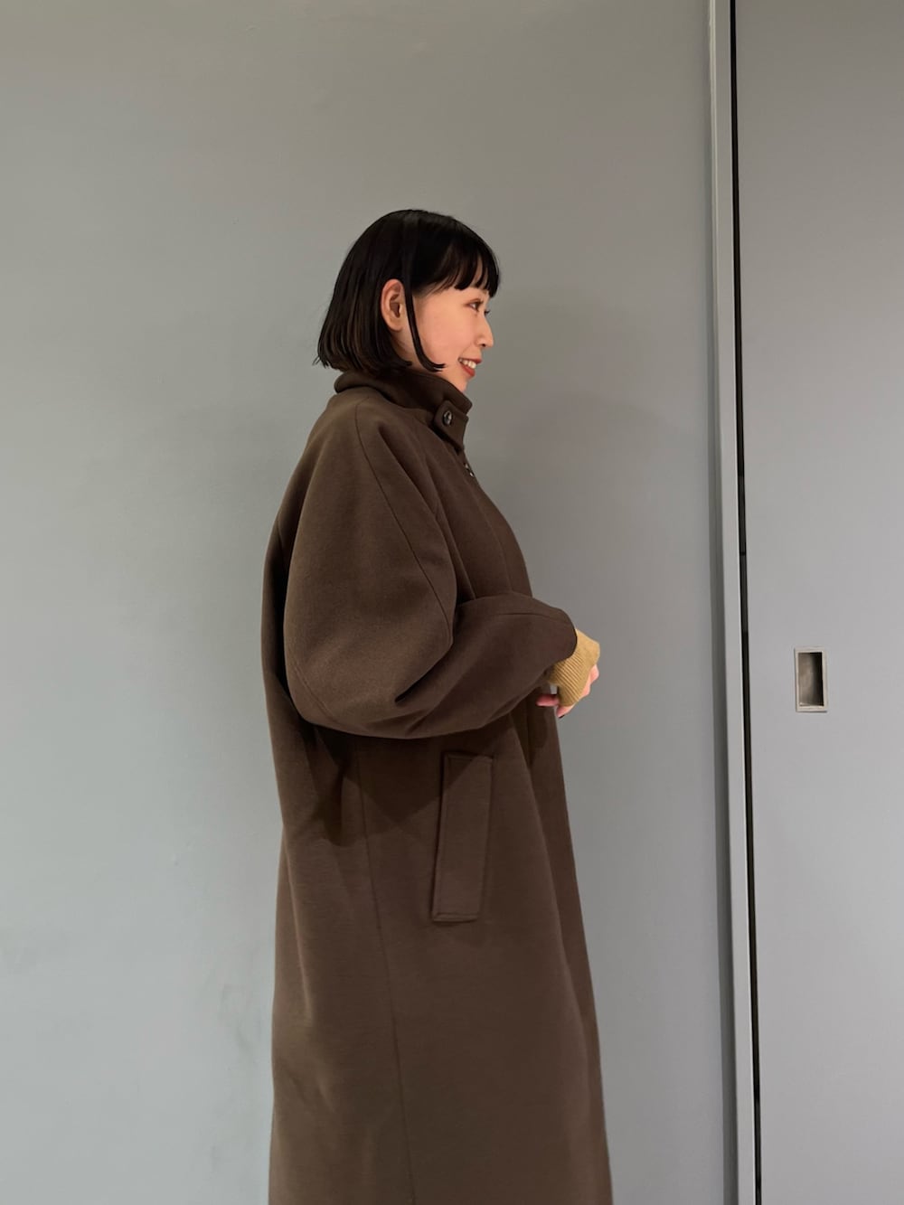 首を立てて着ることで、マフラーいらずで暖かく、襟を折っていただいて着ることで、少し甘めな女性らしいロングコートとしてもお使いいただけます!!