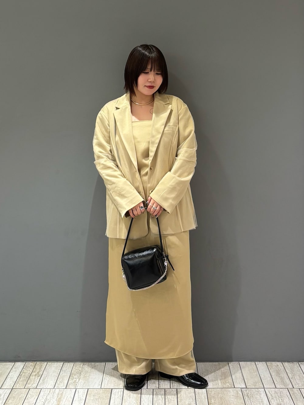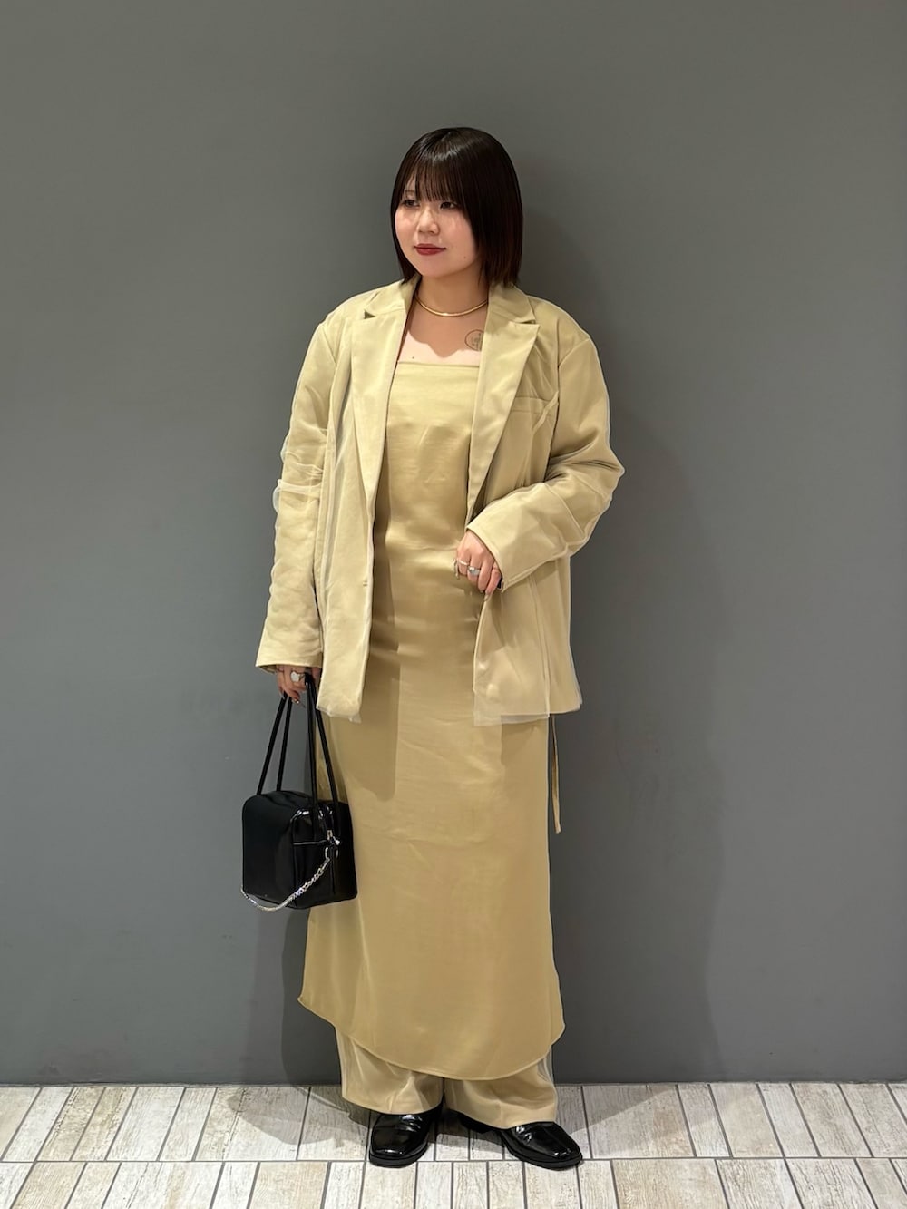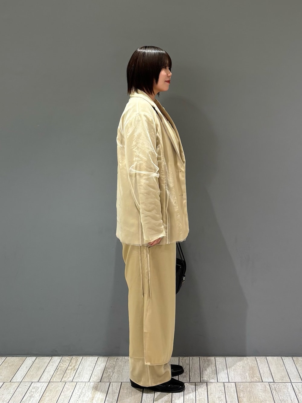 着てみた感じ、サイズはジャストサイズ寄りのシンプルなデザインなので骨格ストレートさんにはイチオシのオケージョンアイテムとなっております!オケージョン以外でも黒のスラックスやデニムと合わせても絶対に可愛いので普段使いもいけます🪄