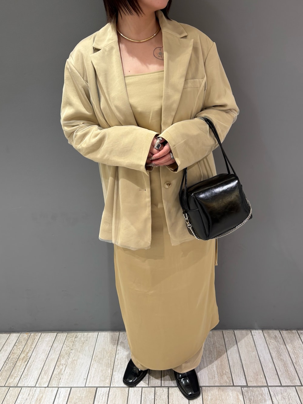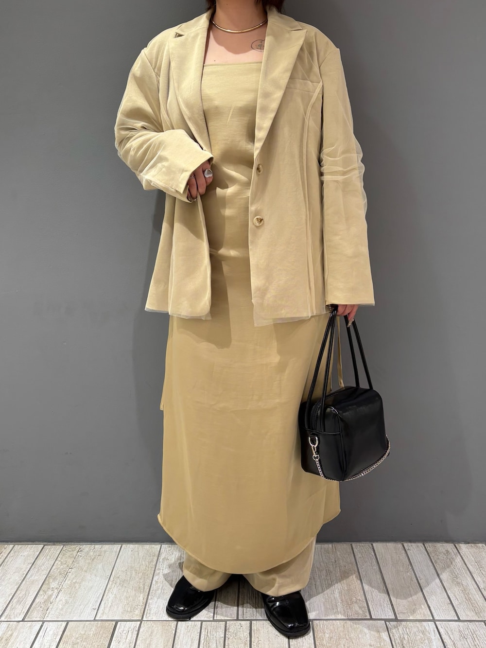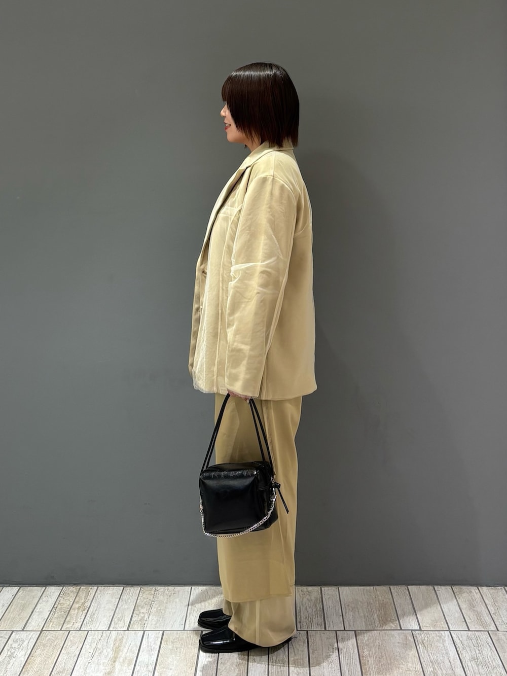 着てみた感じ、サイズはジャストサイズ寄りのシンプルなデザインなので骨格ストレートさんにはイチオシのオケージョンアイテムとなっております!オケージョン以外でも黒のスラックスやデニムと合わせても絶対に可愛いので普段使いもいけます🪄