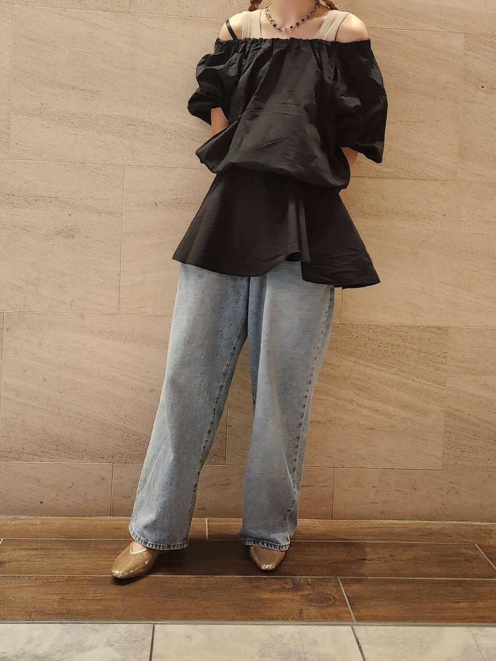 きれいめオフショルブラウスをカジュアルにデニムと合わせました!