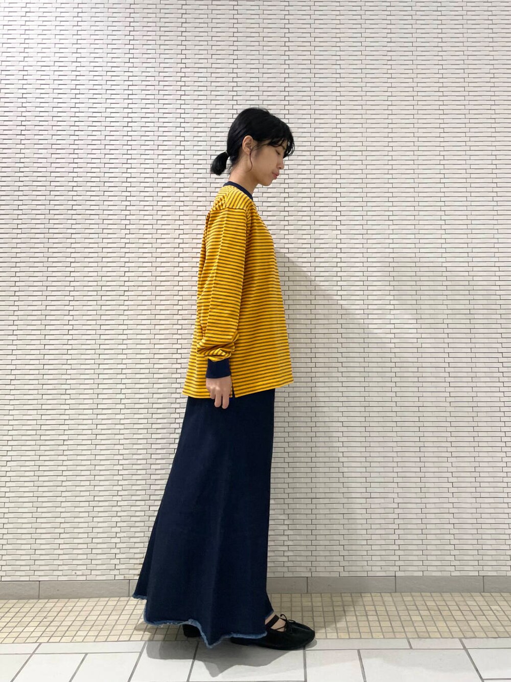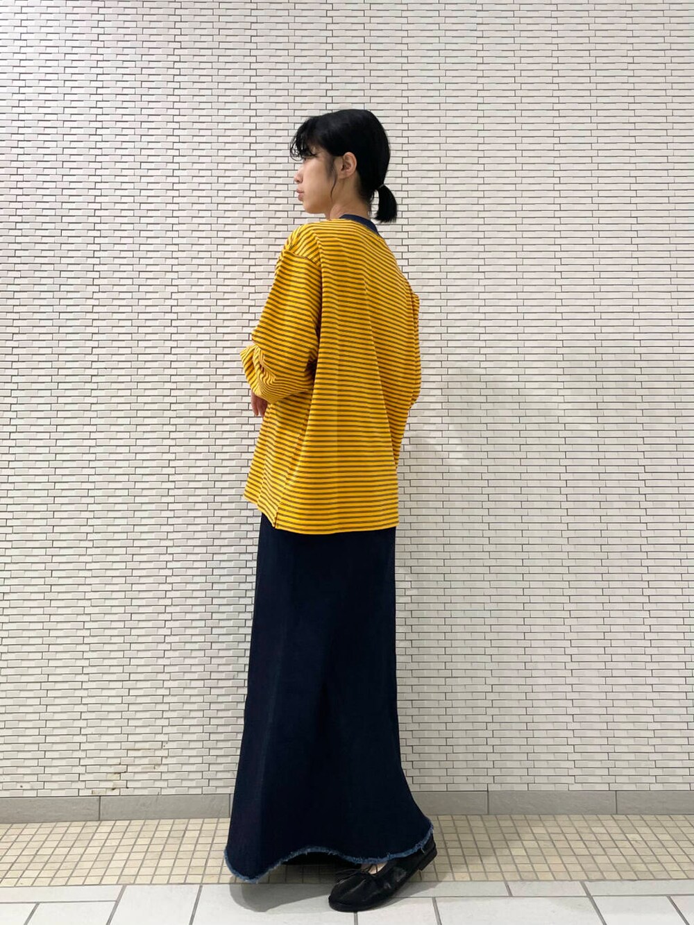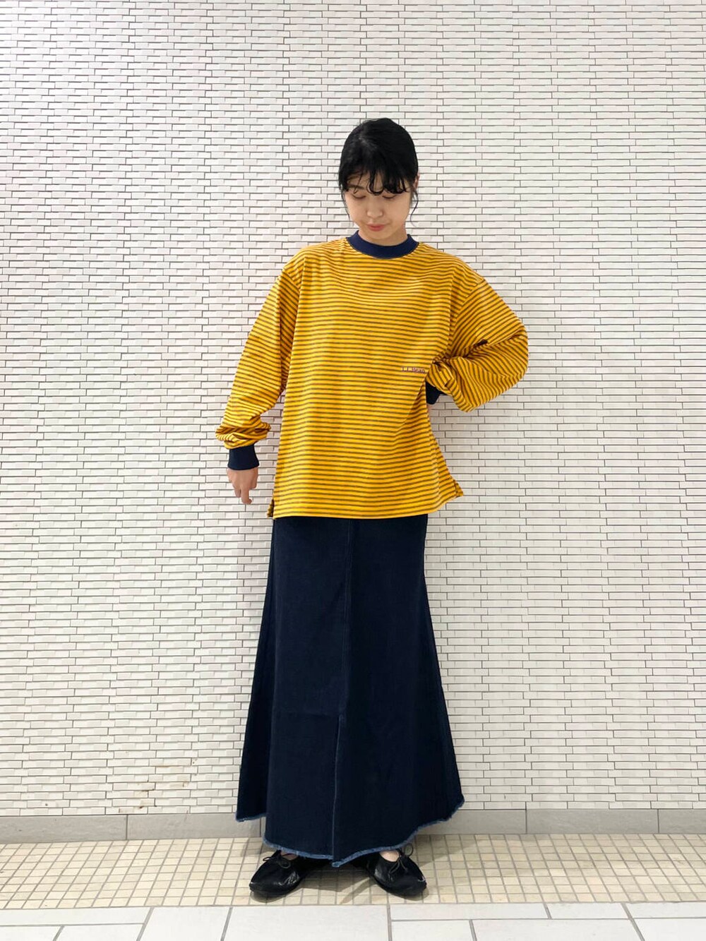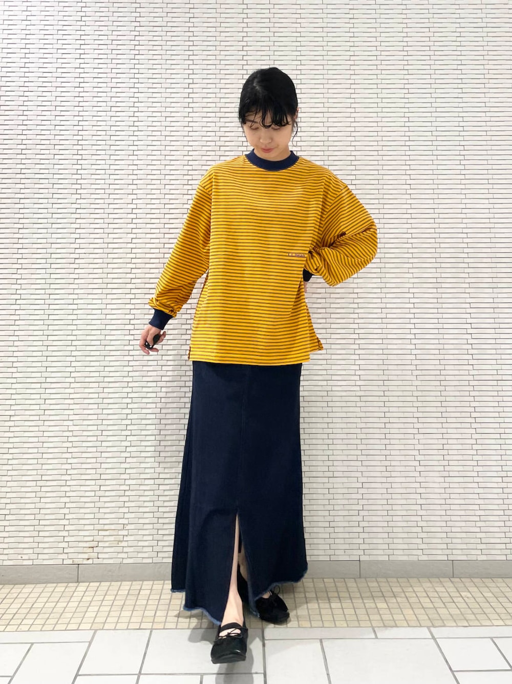 デニムスカートとバレエシューズで女の子らしく合わせてみました!