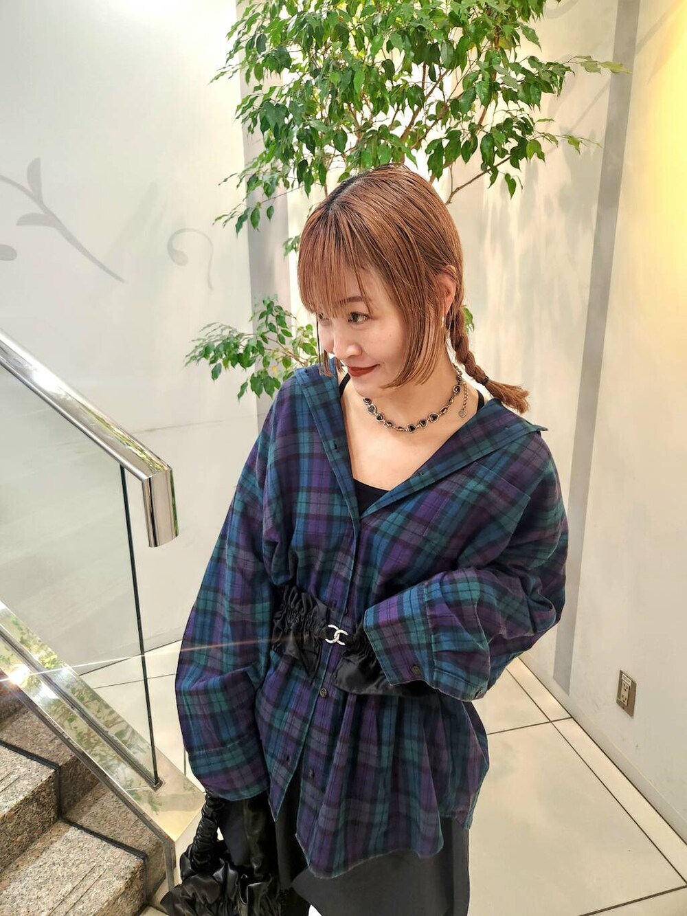 #チェックブラウス
