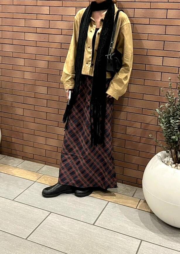 チェックのスカートを合わせてカジュアルすぎない雰囲気にしました!