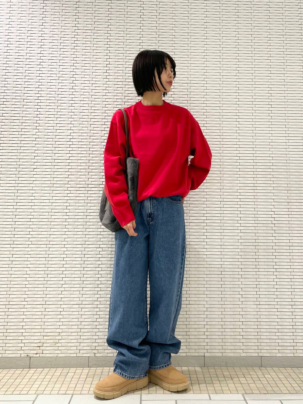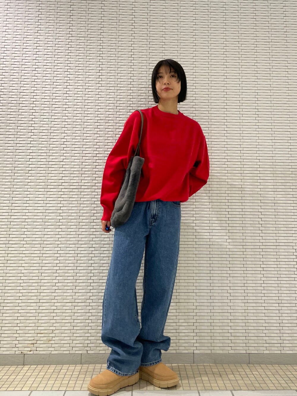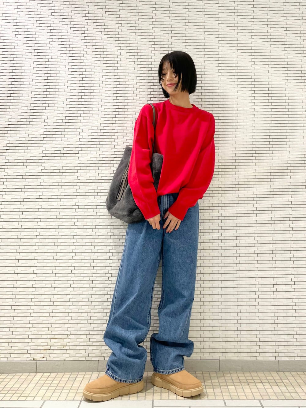 赤ニットを主役に定番カジュアルコーデをくんでみました!