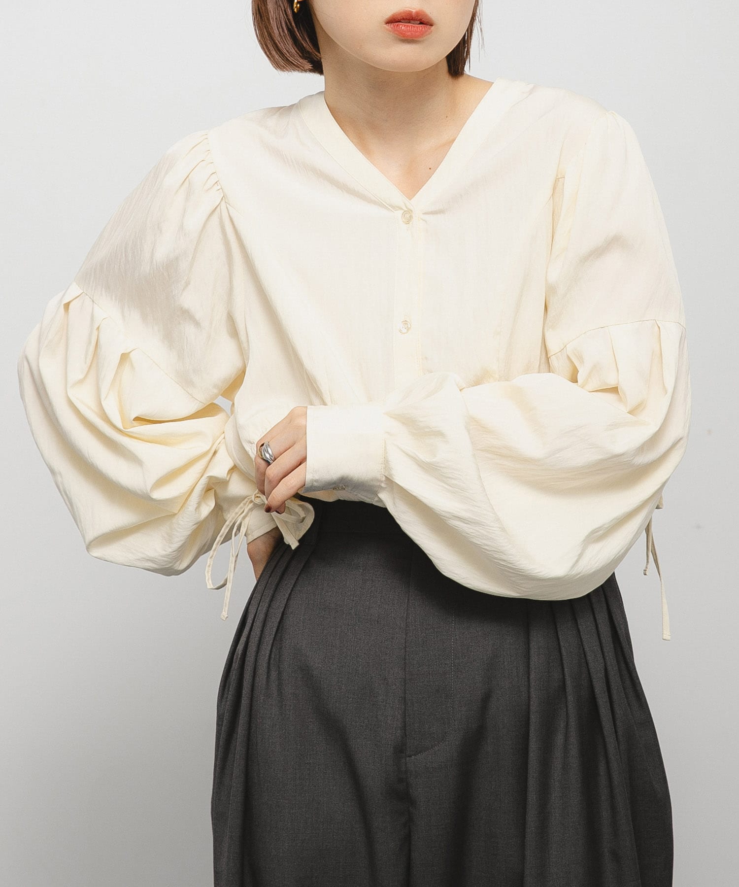KBFVネックボリュームブラウス- カラー: