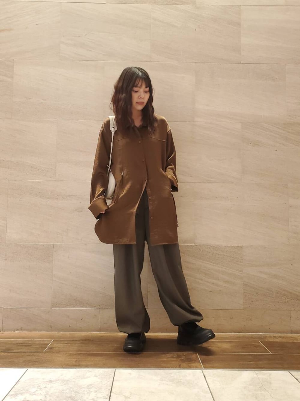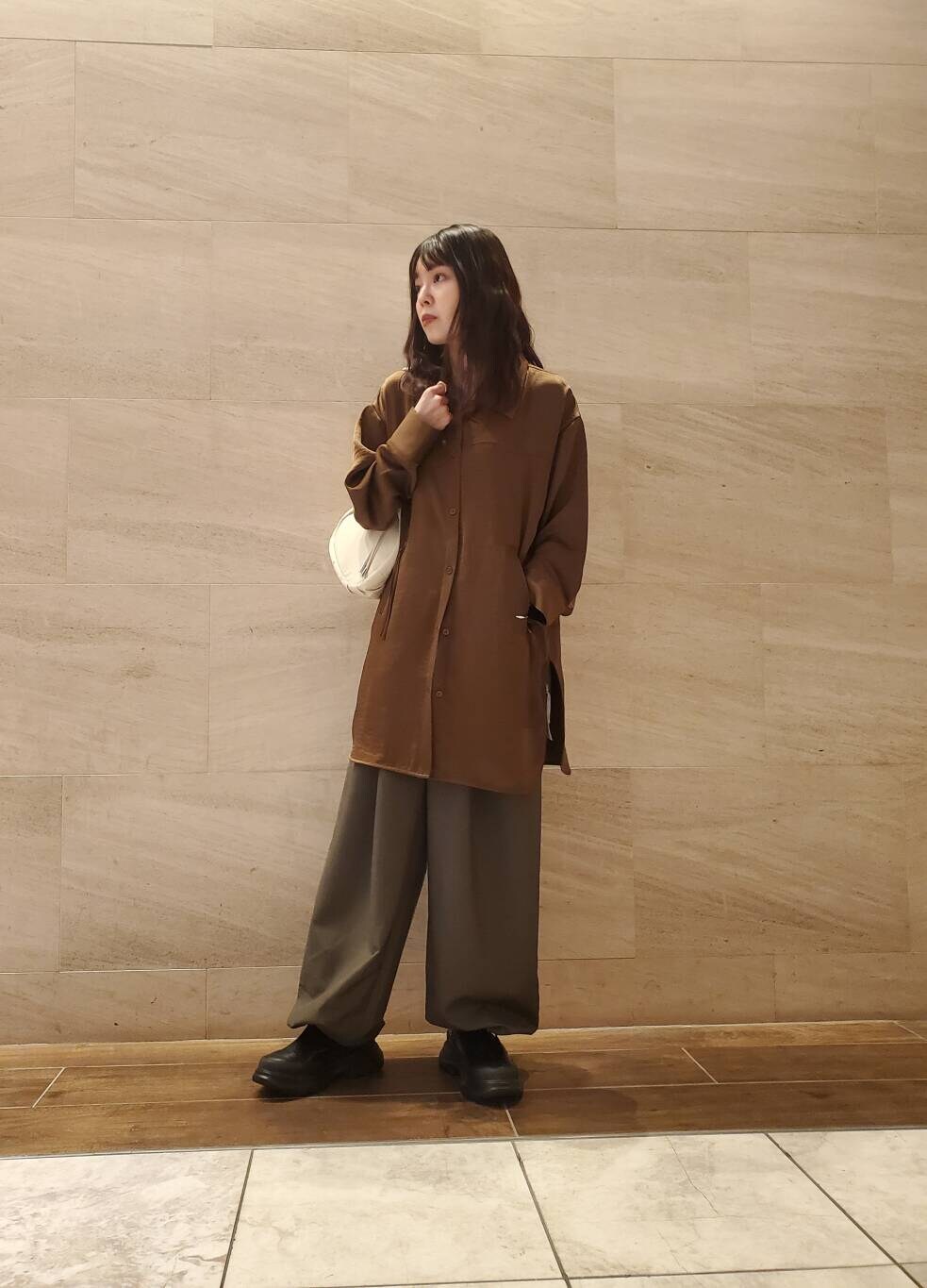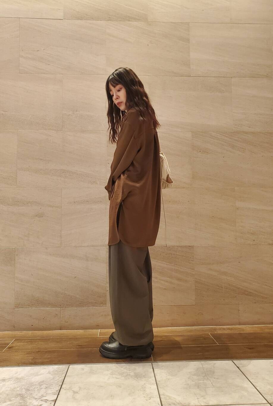 サテンロングシャツ