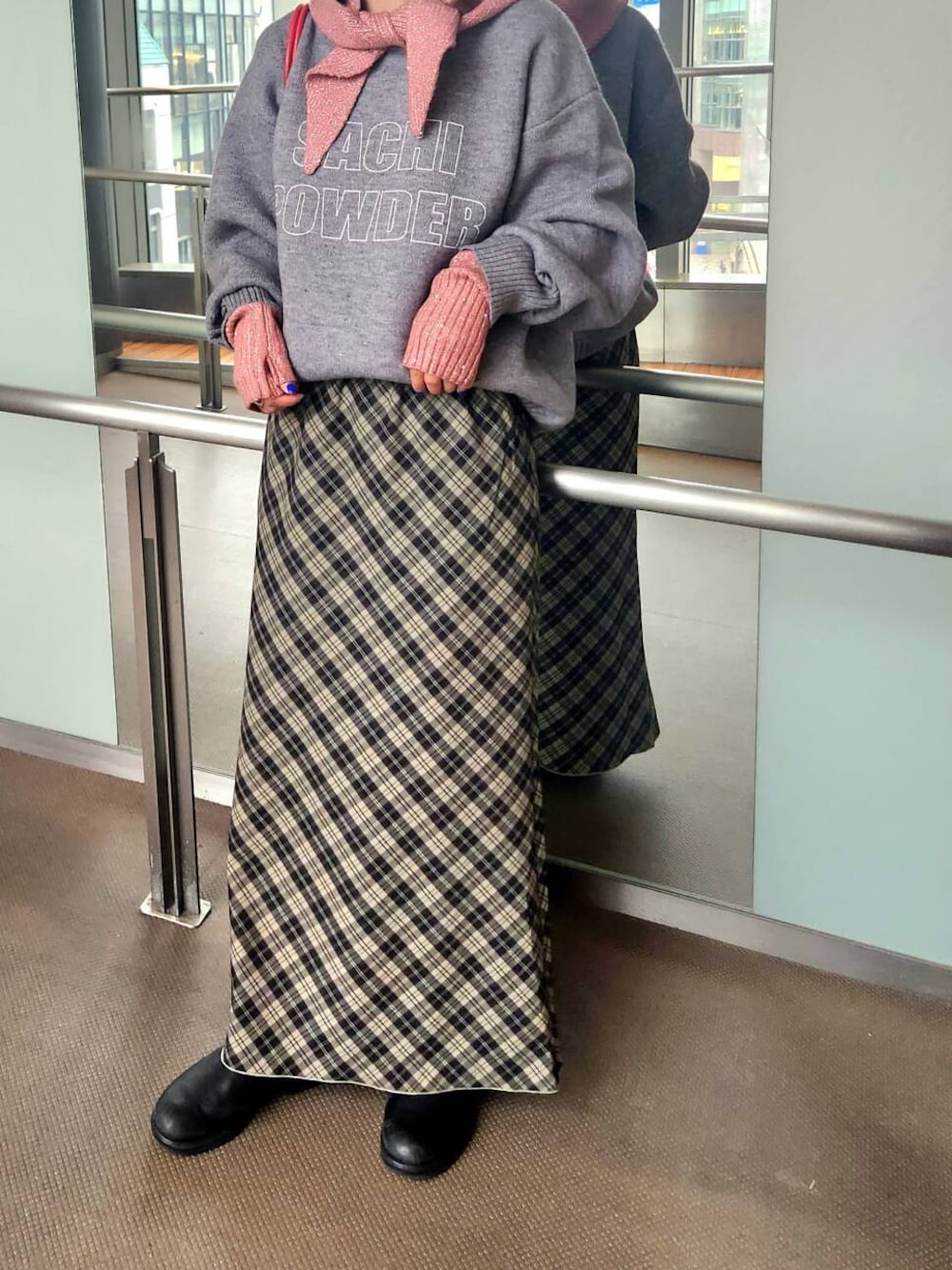 チェックナロースカート(裏付)