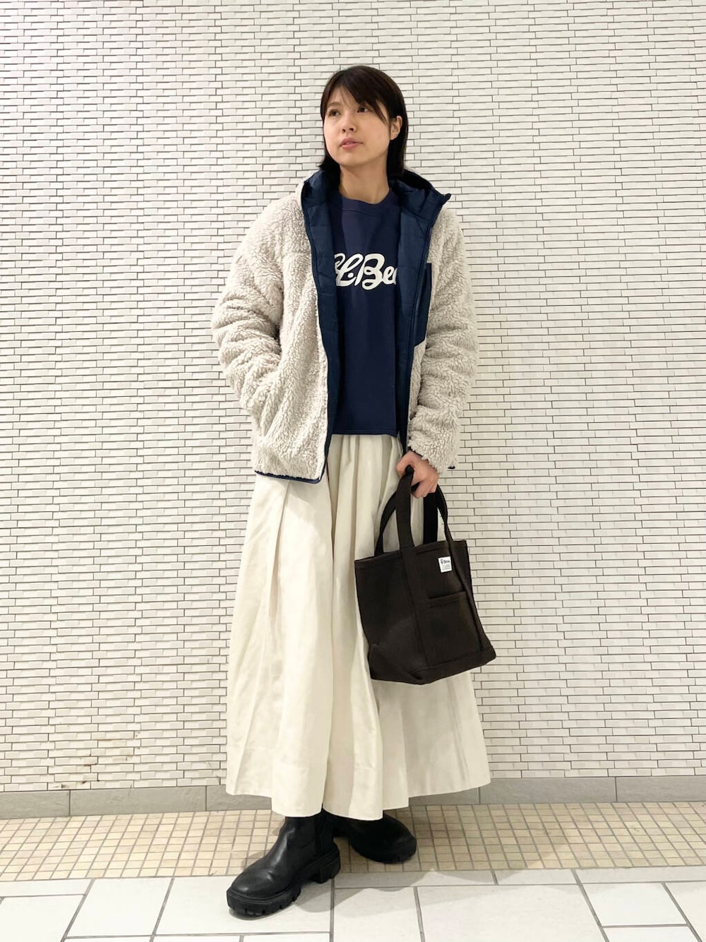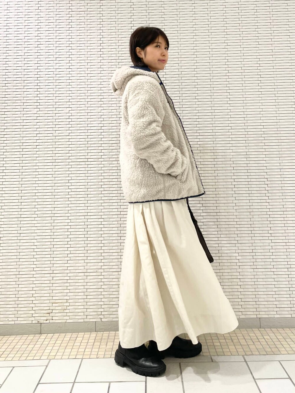 程よい光沢感がコーデ全体に抜け感を出してくれます!素材が重たくなる冬におすすめなスカートです!