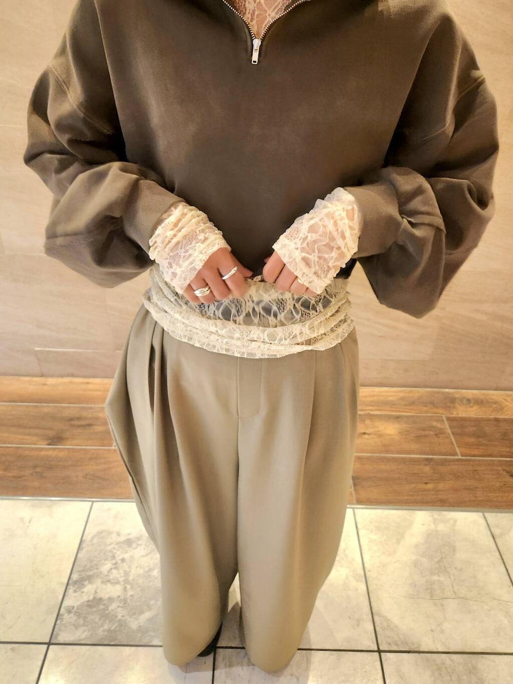 レースのカットソーはお袖のギャザーも可愛いのでジャケットのインナーにもオススメです!是非、お試しください☺